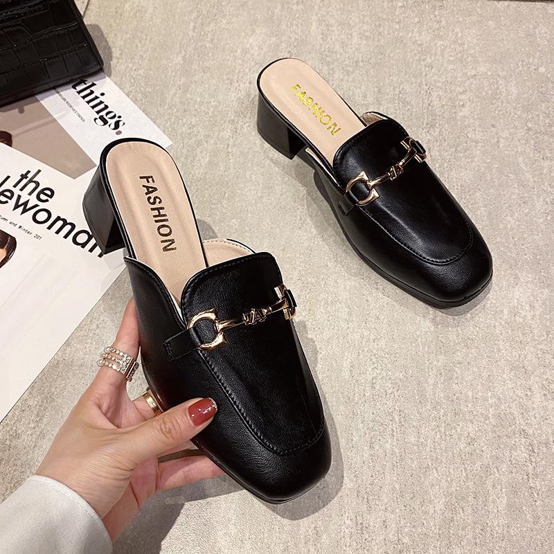 Баотоу полутапочки женские летние новые туфли с темпераментом полуподнос женская обувь крутые тапочки толстый каблук одинарные туфли