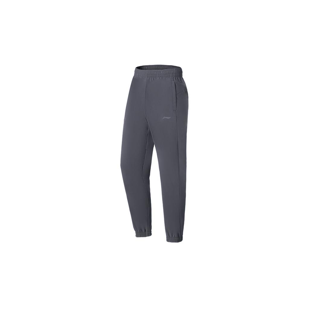 Li-Ning Спортивные брюки Fitness Series с однотонным логотипом и эластичным поясом, зауженные книзу, мужские, земляно-серые, AYKT537-2