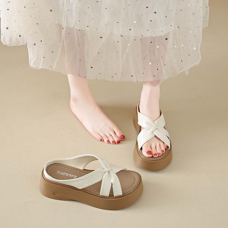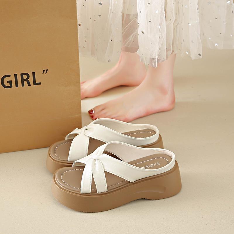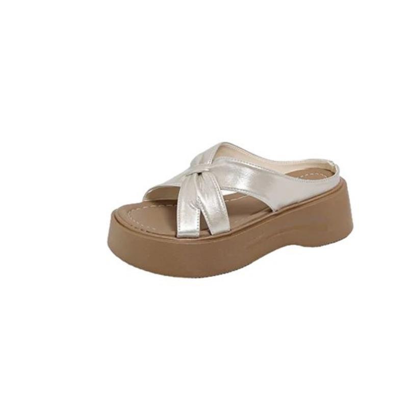 Летние женские шлепанцы на толстой подошве, новые шлепанцы-однословки с перекрестными ремешками и плоской подошвой, высокого класса для ношения с юбкой
