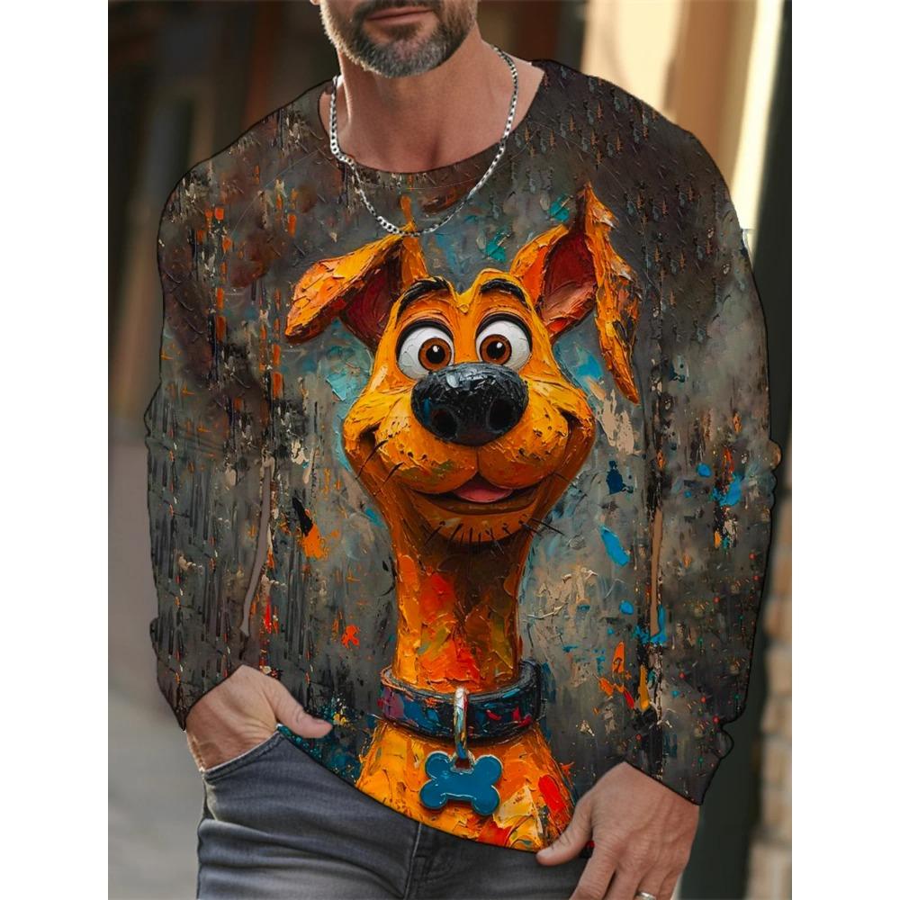 Забавная мужская повседневная и удобная футболка с круглым вырезом и длинными рукавами с 3D-цифровым принтом животных