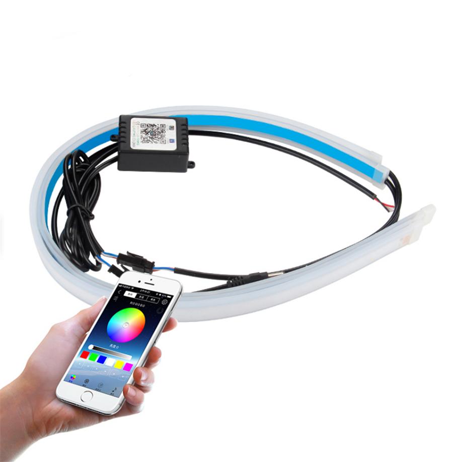 60 СМ Стайлинг автомобиля RGB Последовательная светодиодная лента ДХО Дневной ходовой свет с приложением Bluetooth Пульт дистанционного управления для сборки фар