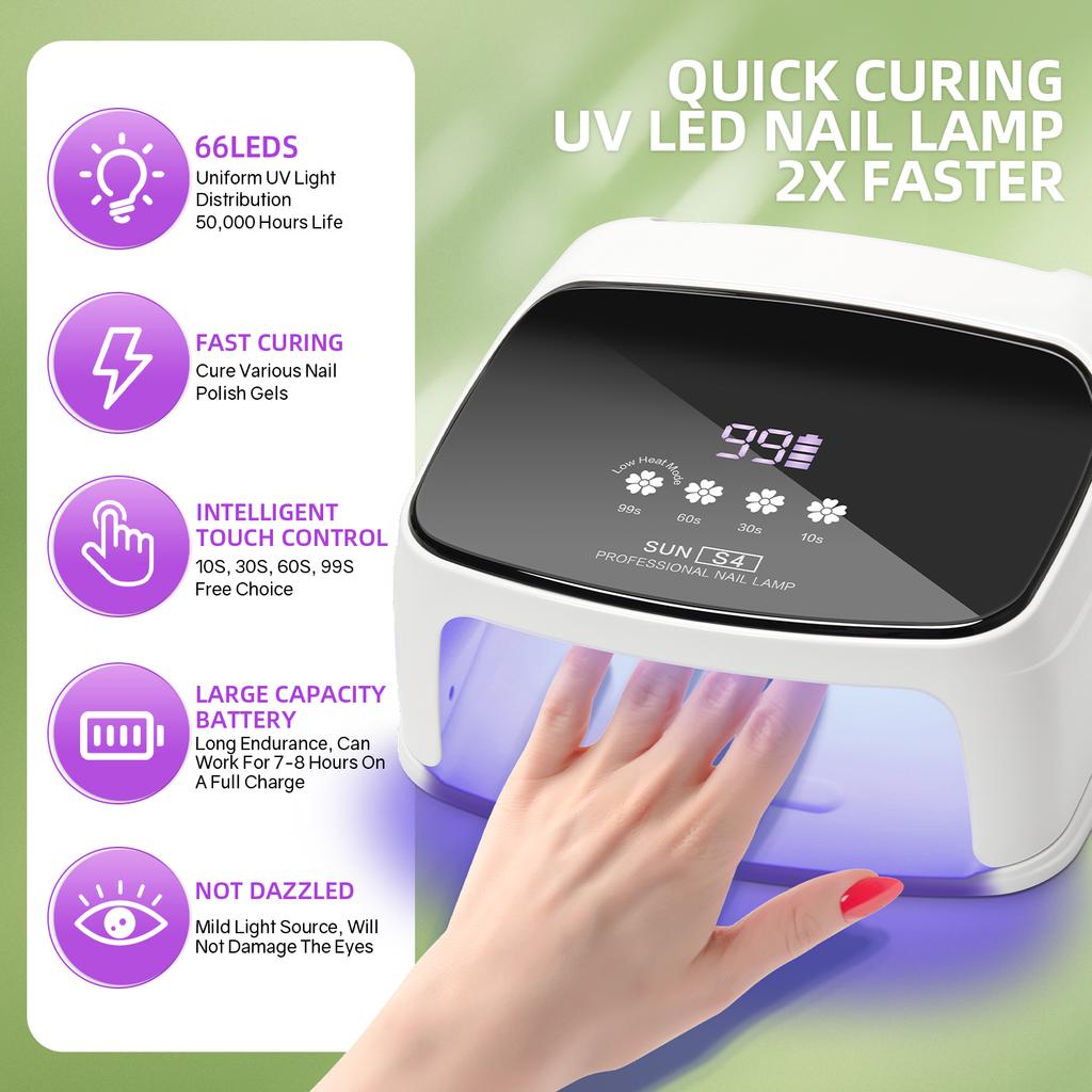 288 Вт 66 светодиодов УФ лампа-сушилка для ногтей для сушки ногтей, гель-лака, профессиональная лампа для полимеризации, для маникюра, 4 таймера, ЖК-дисплей, инструменты