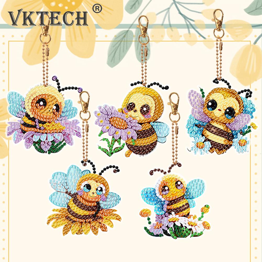 Новый брелок DIY с полной выкладкой, подвеска для алмазной живописи, набор для алмазной мозаики, вышивки, милая пчелка, украшение для рюкзака, подарок, 5-6 шт./набор