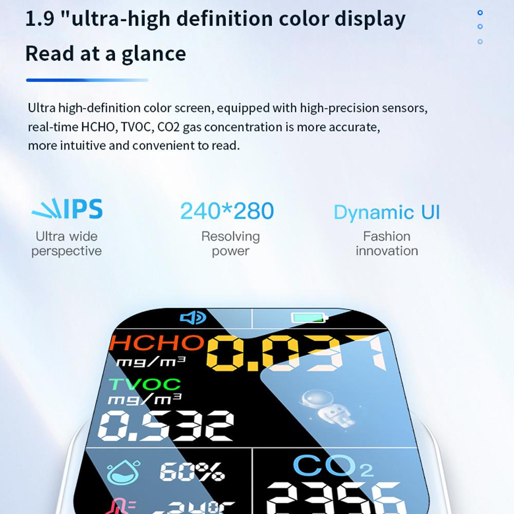 Домашний Дорожный 5-в-1 Монитор Качества Воздуха ЛОС ФХО Измерение Температуры и Влажности Детектор CO2 Обнаружение Безопасности Воздуха