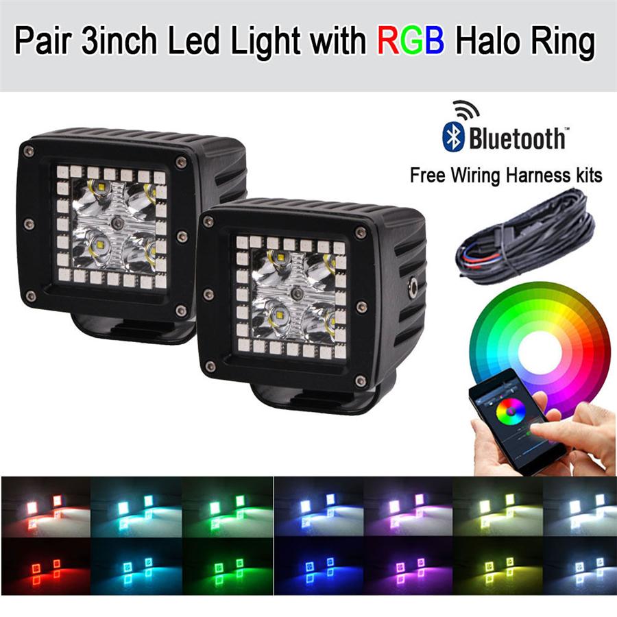 2 шт. x 3-дюймовые сверхяркие кубические светодиодные рабочие фары с RGB-подсветкой 'бегущий огонь'