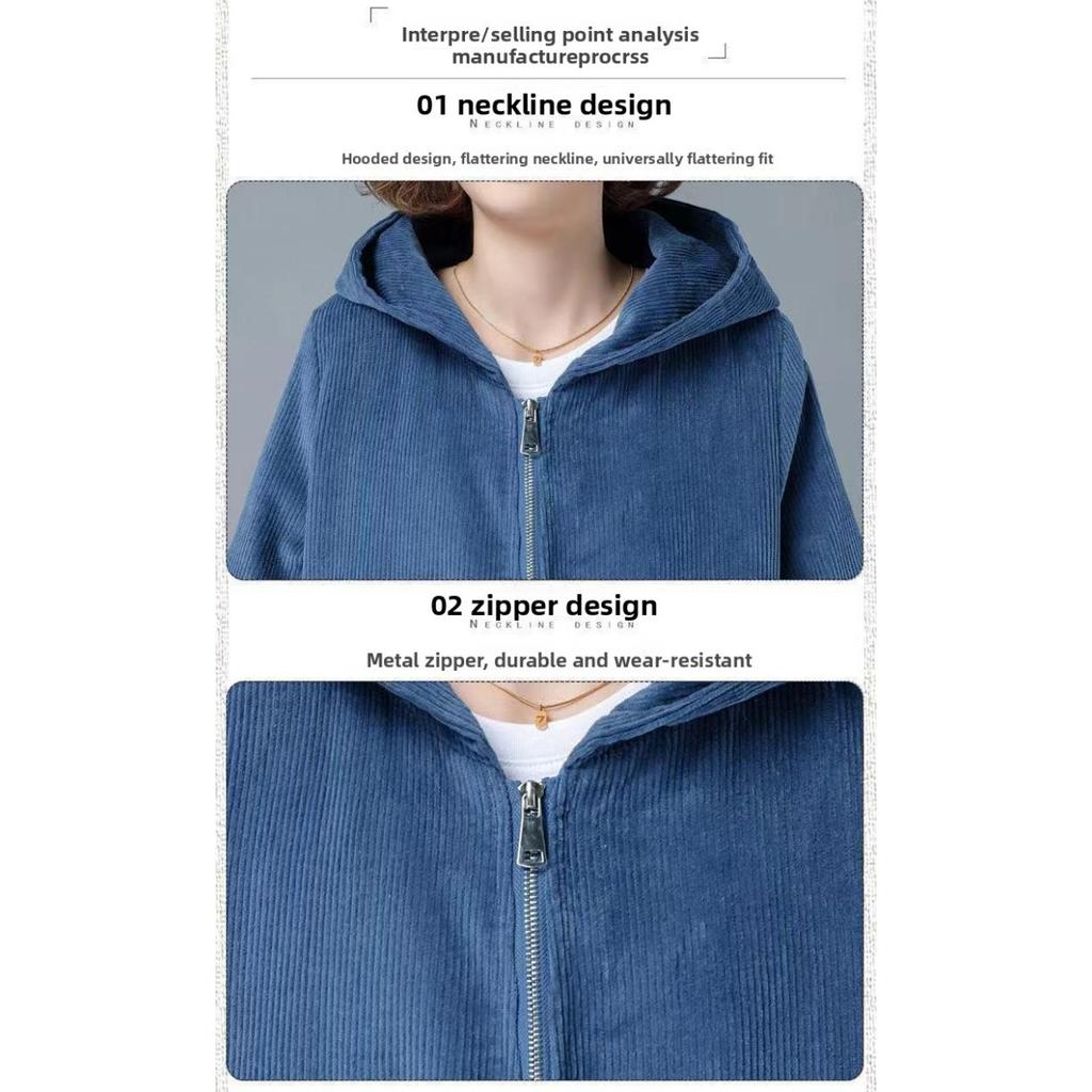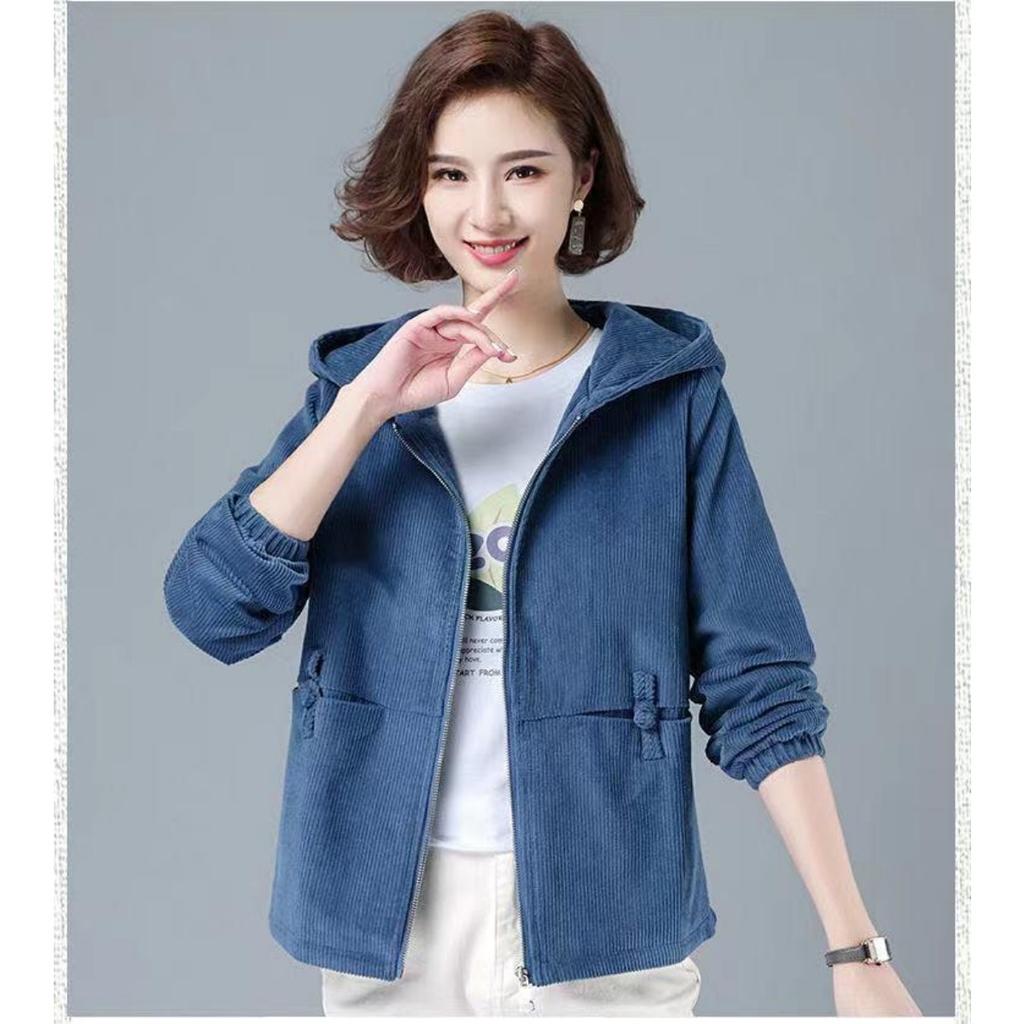 Вельветовая женская короткая куртка Корейская версия Свободная, Осенне-зимняя Большого размера Приталенная куртка Повседневная толстовка для женщин