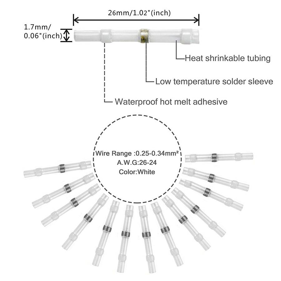 Dual-walled Design: Polyolefin tubing outside and hot melt rings inside effectively improve waterproof performance and prevent wire corrosion.