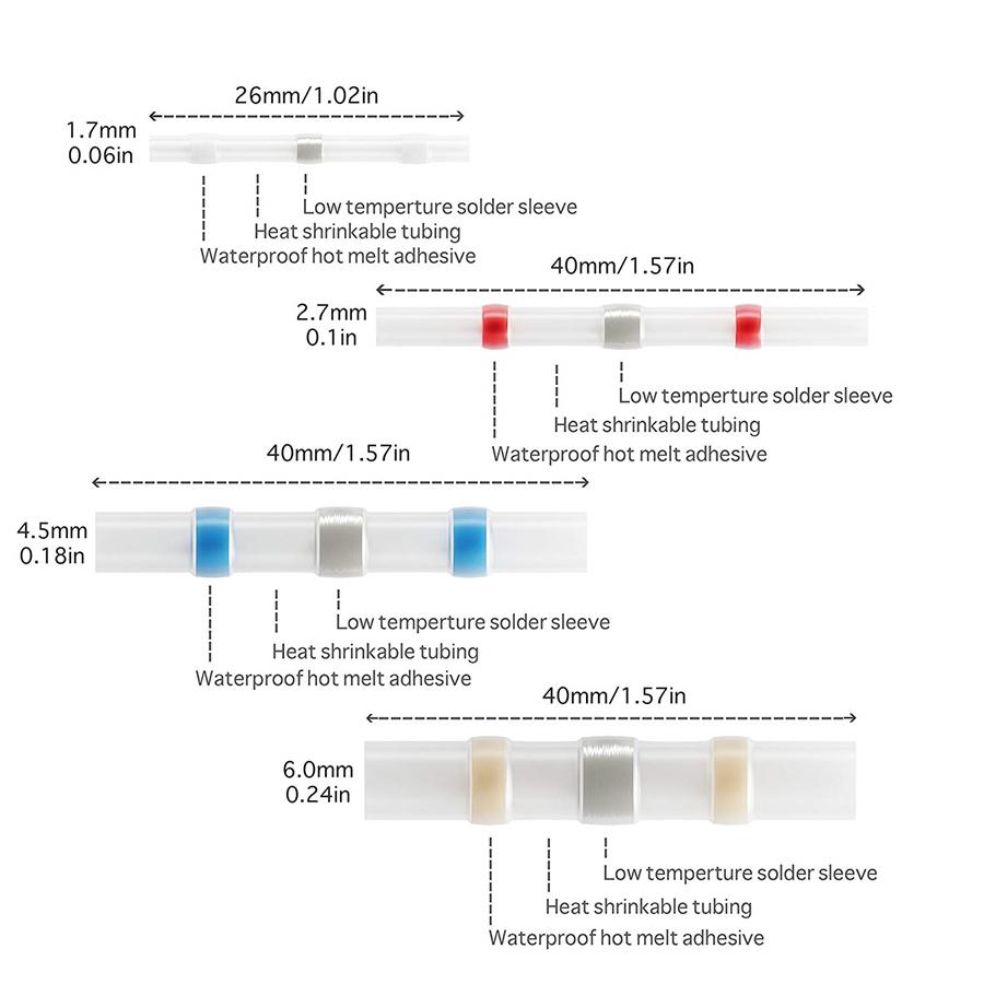 ✿【EASY OPERATION】 - Shrink Ratio 2:1. NO Crimping Needed. Transparent sleeve provides precise inspection when strip and insert wires inside. Color-coded tubing makes it easy for you to pick up for use.