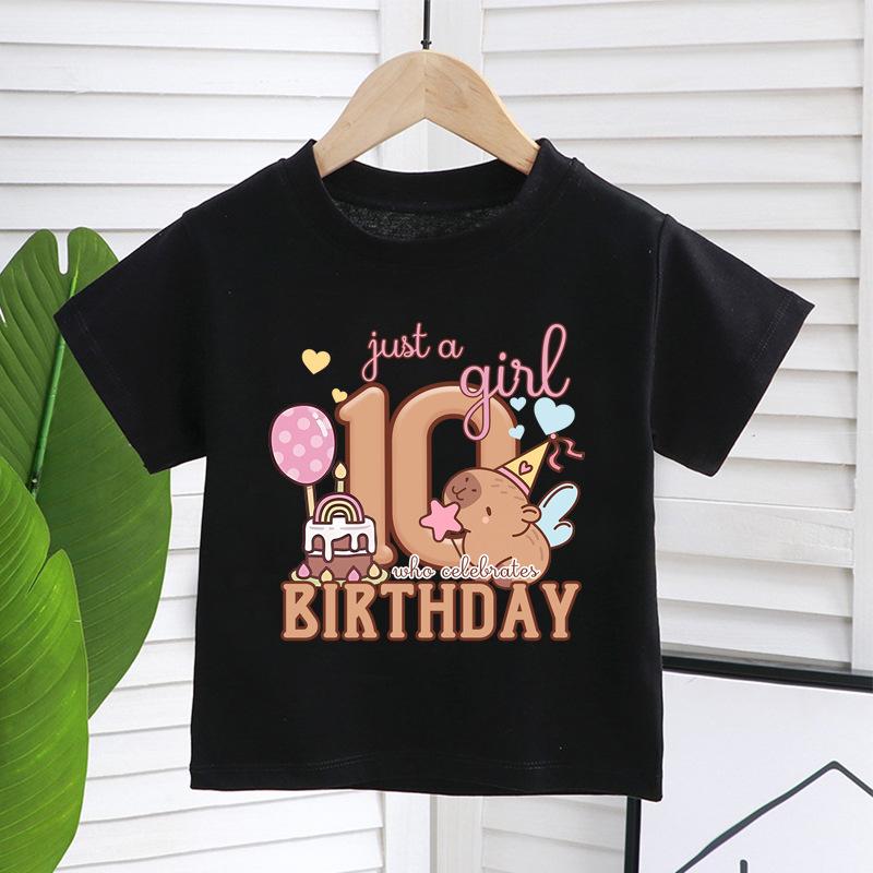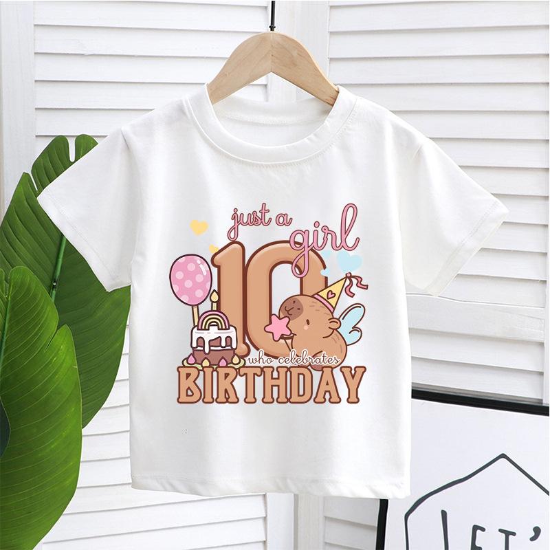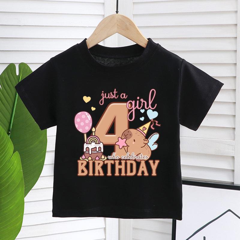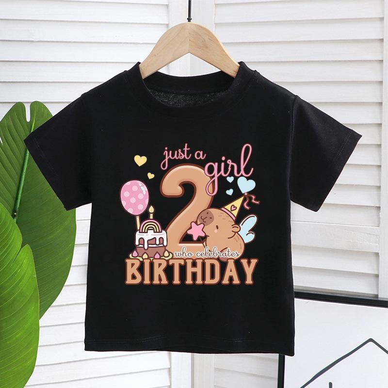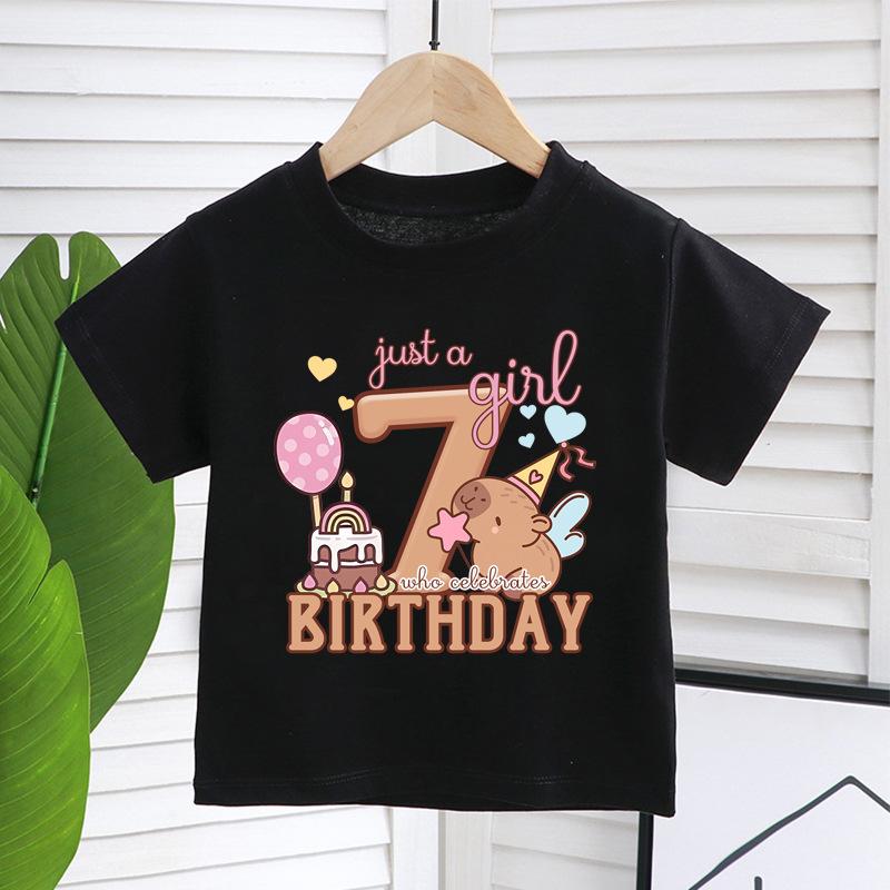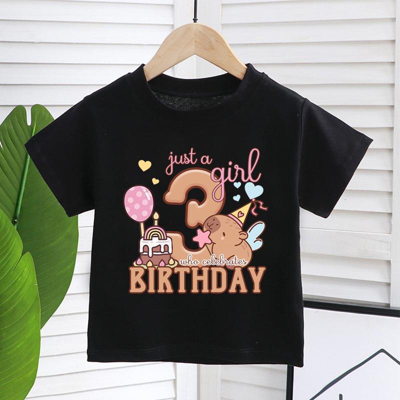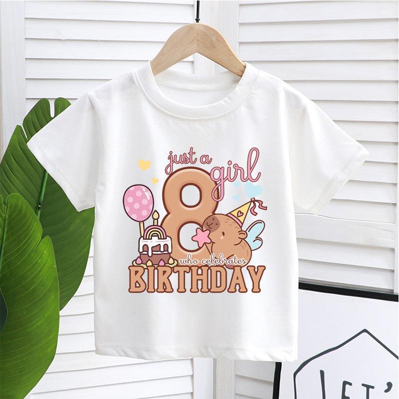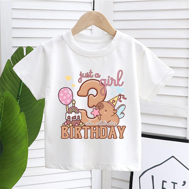 Новая футболка с принтом капибары, летняя, на день рождения, с цифрой, из чистого хлопка, детская, с коротким рукавом, милая футболка для детей