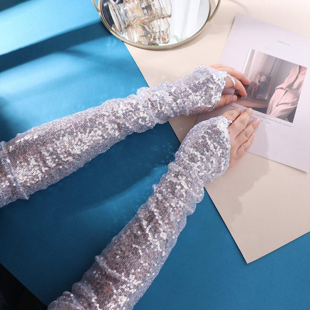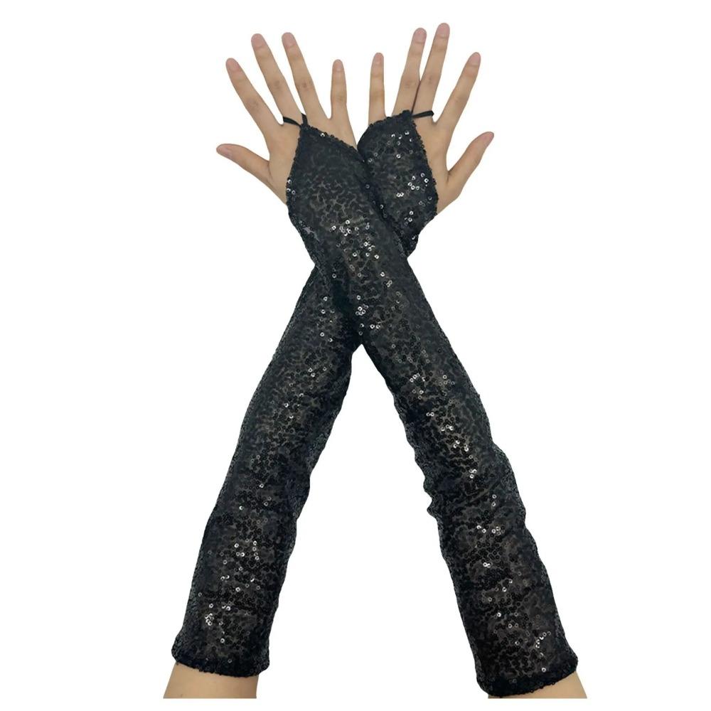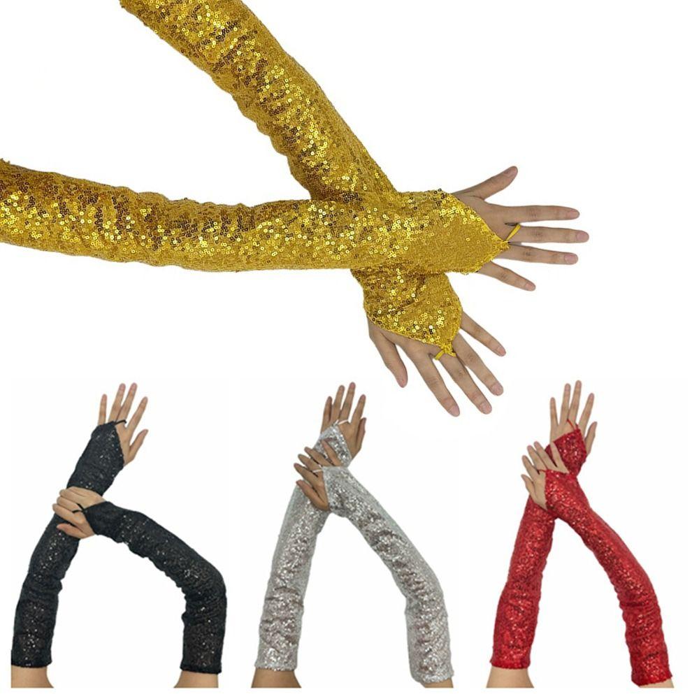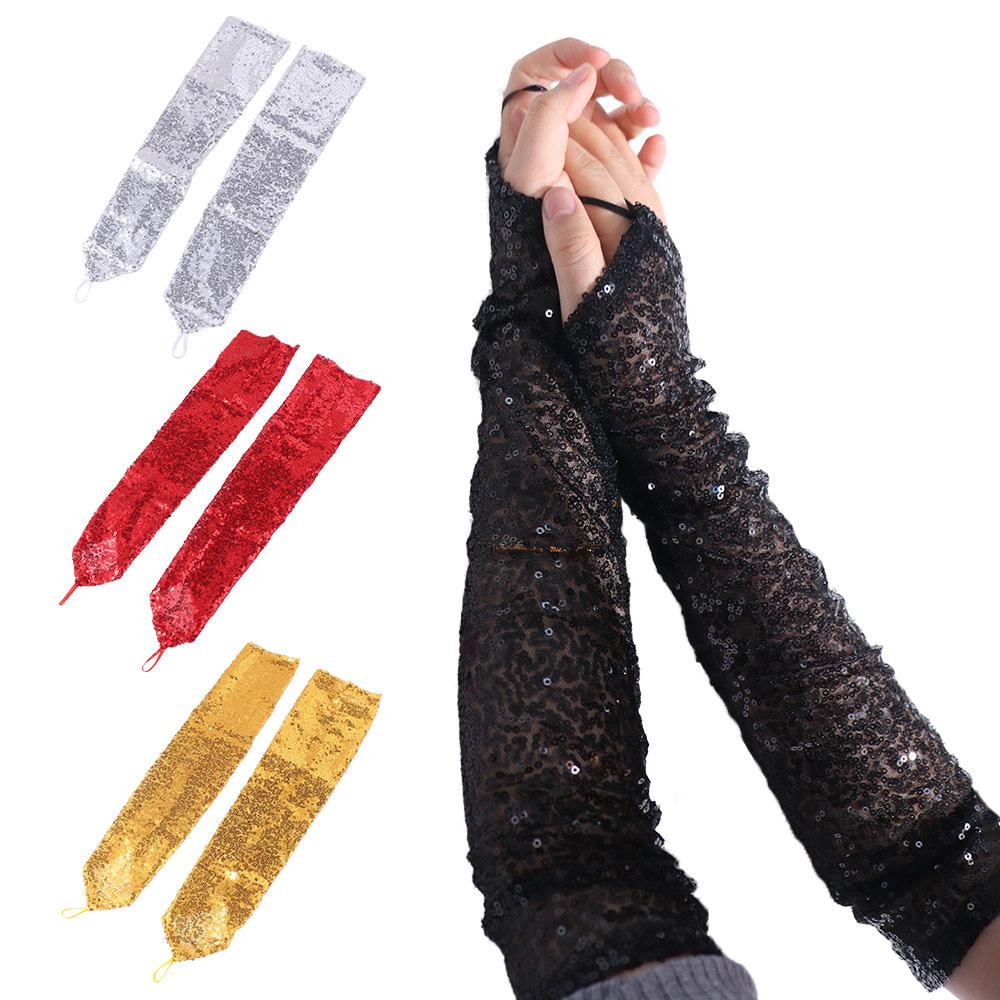 Блестящие женские перчатки для косплея, длинные перчатки без пальцев со сборками, перчатки с пайетками, аксессуары для нарядного костюма