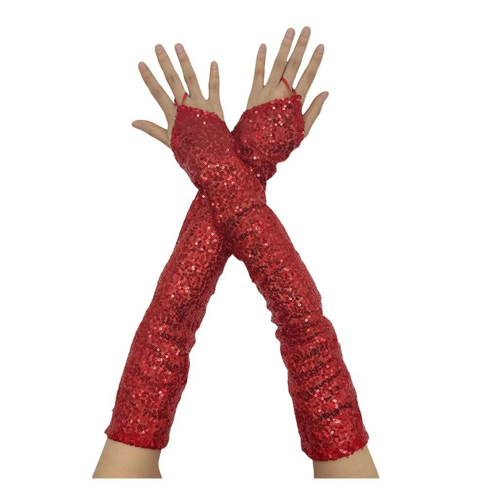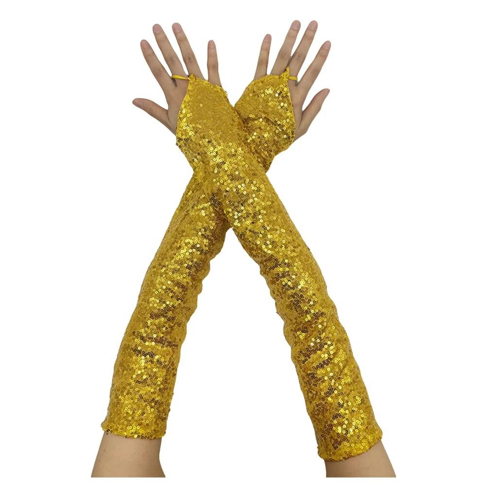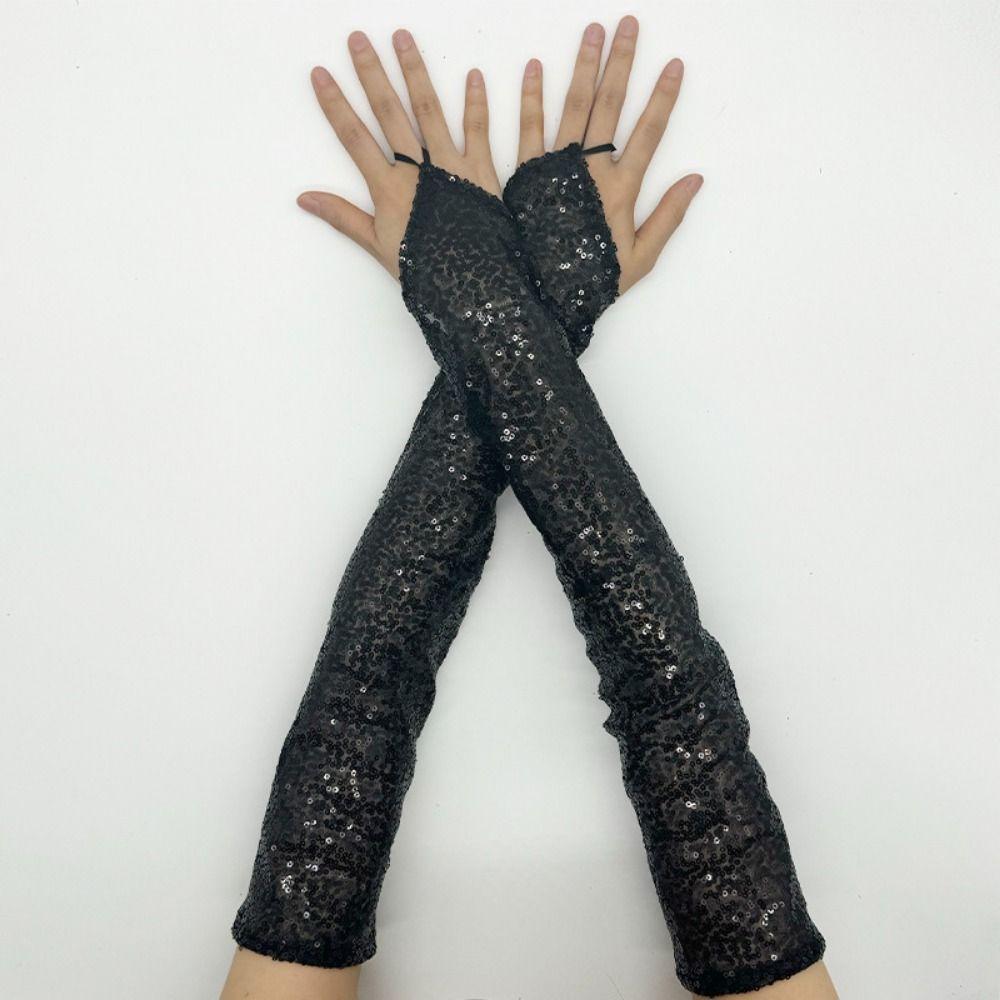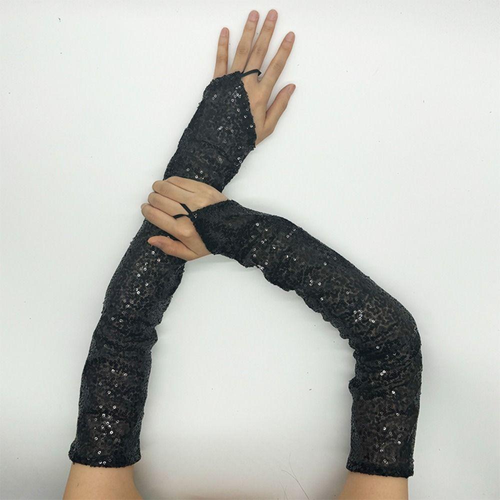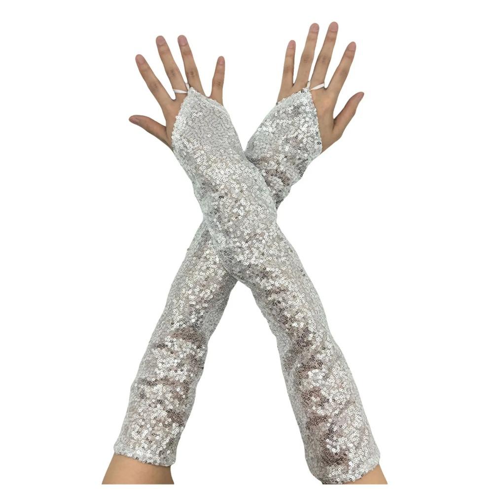 Блестящие женские перчатки для косплея, длинные перчатки без пальцев со сборками, перчатки с пайетками, аксессуары для нарядного костюма
