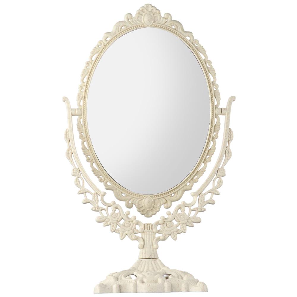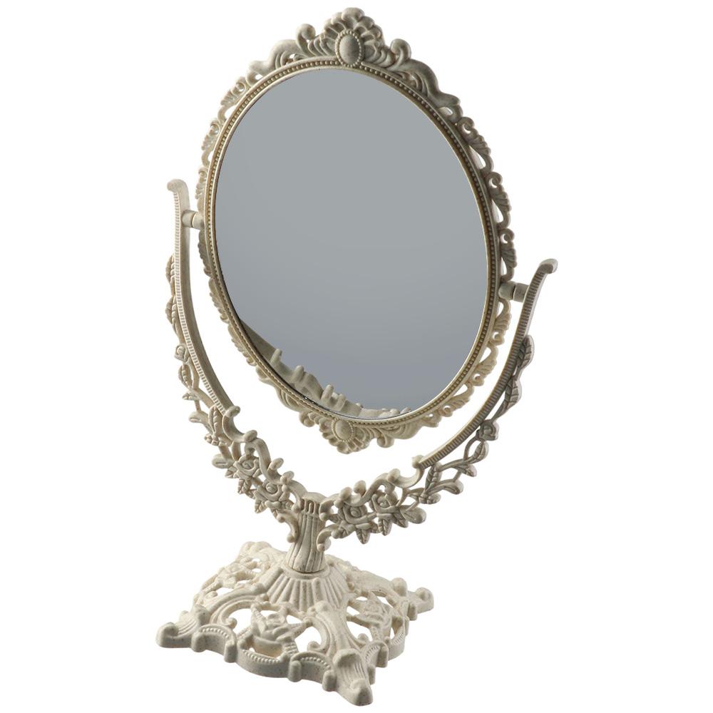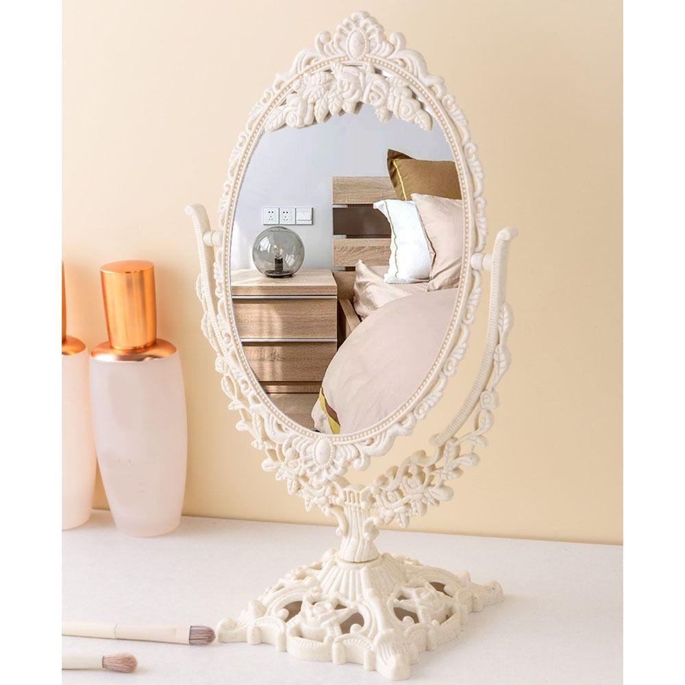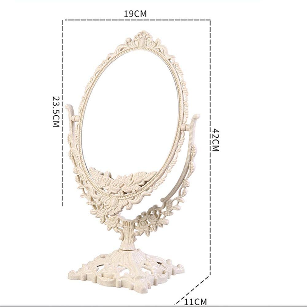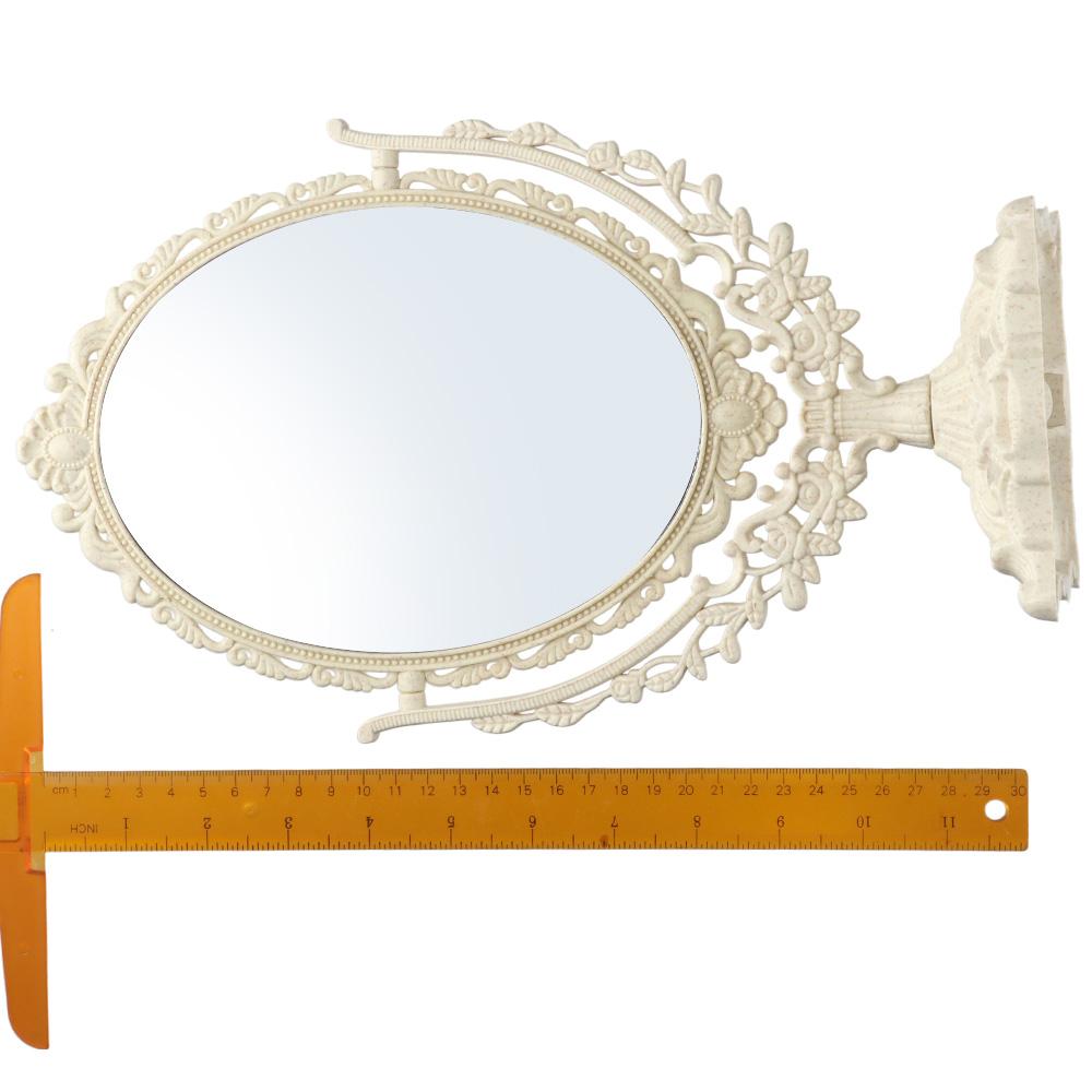 1. Винтажный ретро-дизайн: Это настольное зеркало для макияжа имеет очаровательный винтажный ретро-дизайн, придающий нотку элегантности вашему туалетному столику или туалетному столику.. Классическая овальная форма и красиво обработанные детали делают его стильным и декоративным предметом для вашего салона красоты.