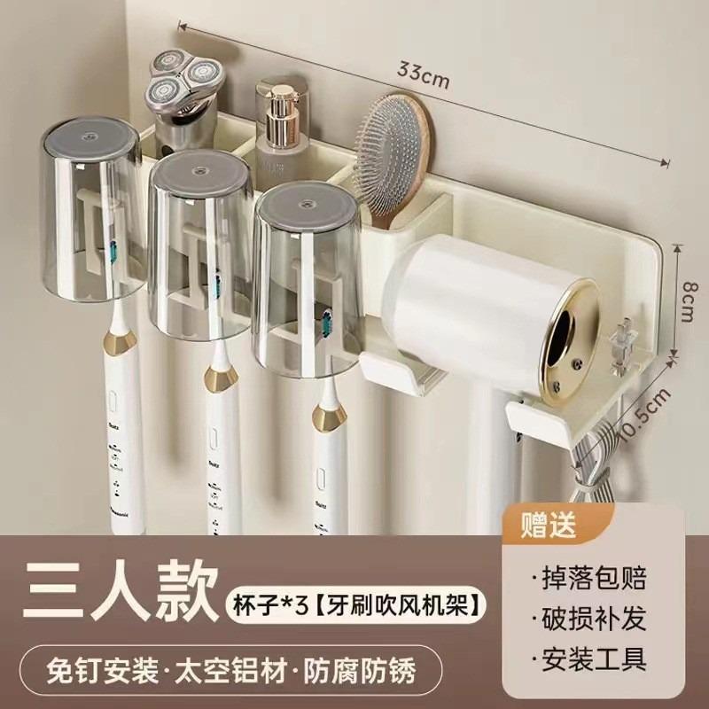 Cream Wind Toothbrush Shelf Shelf No Punching Bathroom Brushing Cup Mouthwash Cup Wall Mounted Hair Dryer Holder