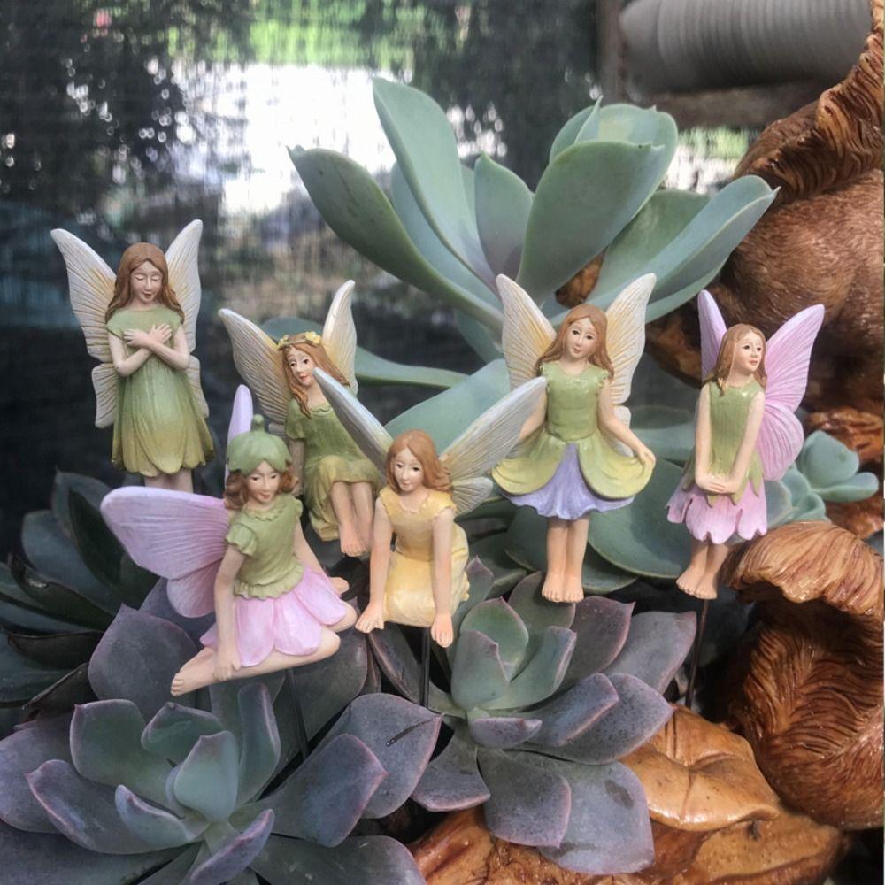 6 шт. Милый набор плагинов с феями цветов, смола, миниатюрные фигурки, садовое украшение, модель феи, бонсай