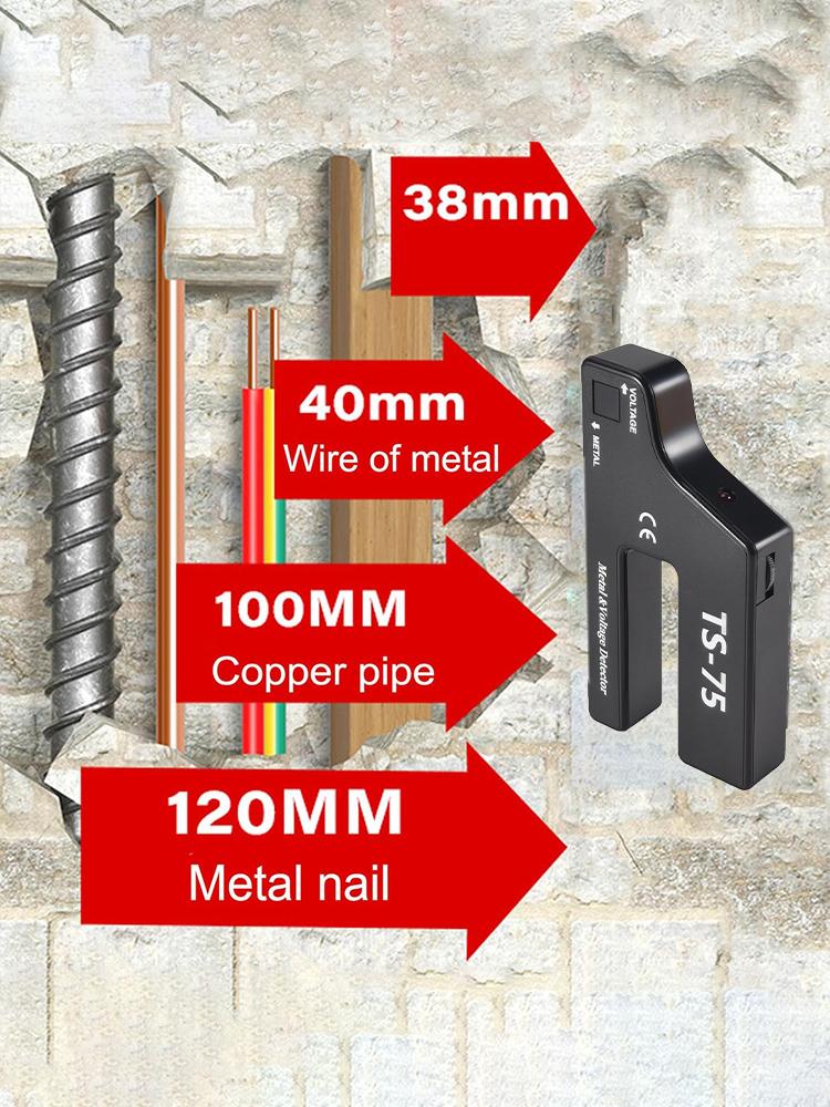 TS75 Настенный сканер Металлоискатель Указатель AC Провод Обнаружение металла Металлоискатель Оповещение Труба Питание Высокая чувствительность