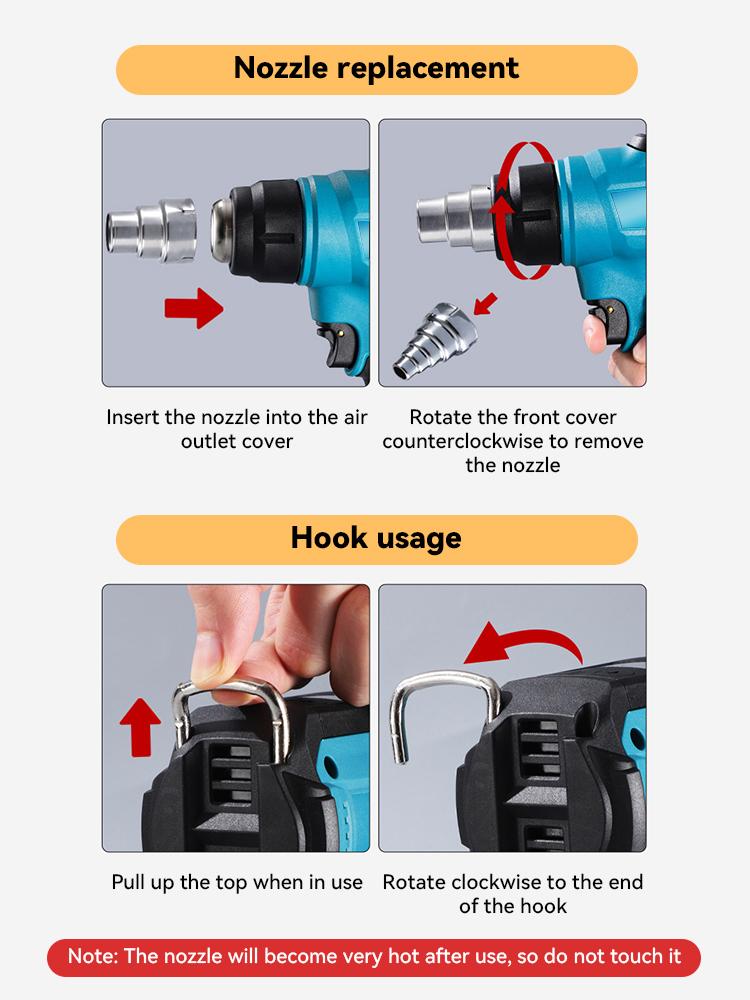 Беспроводной термопистолет для аккумулятора Makita 18V Термоусадочная упаковка Защита от перегрузки Электрический пистолет горячего воздуха Светодиодный дисплей(Нет батареи)