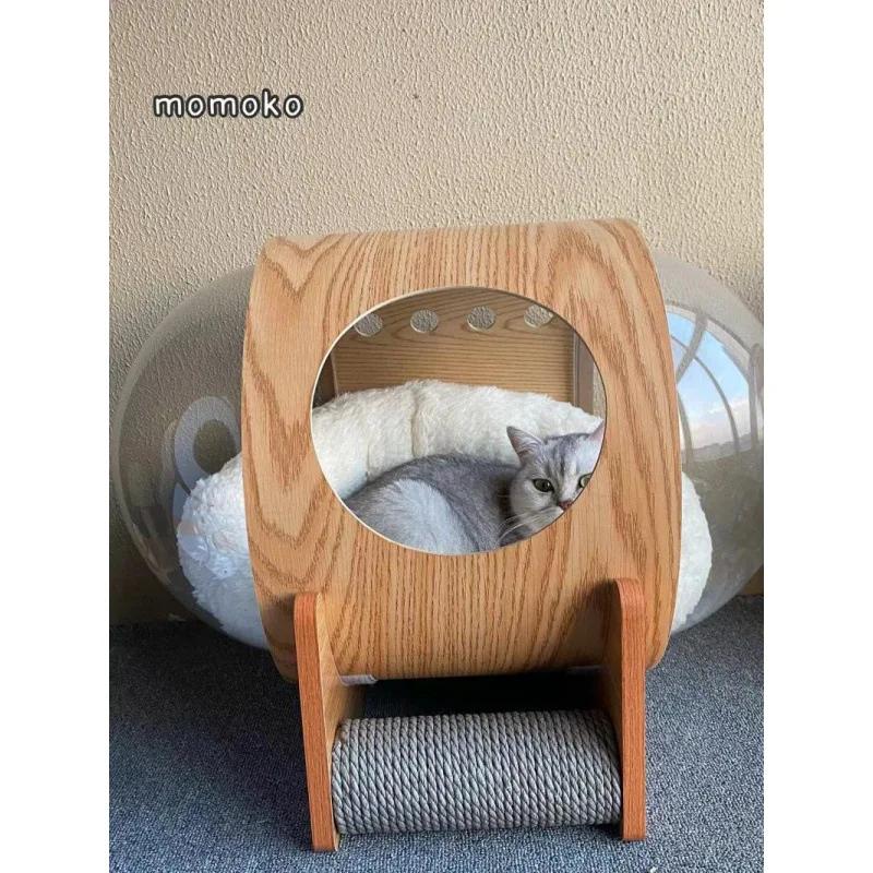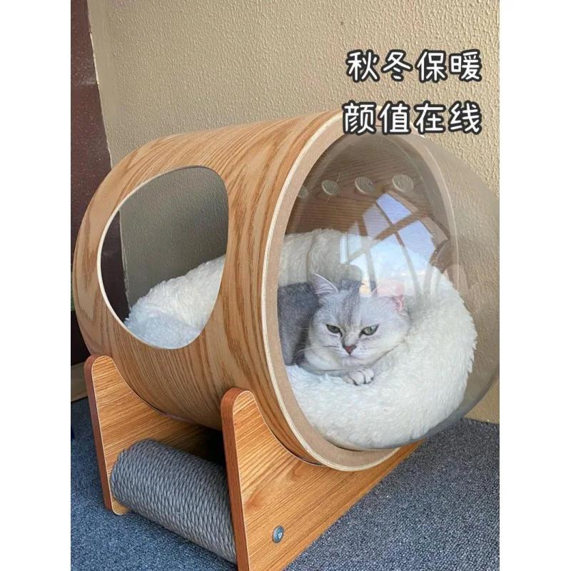 Популярная в сети прозрачная капсула-космический корабль, родильный дом для кошек, универсальный для четырех сезонов, закрытый зимний кошачий домик, капсула из массива дерева, кошачий лоток