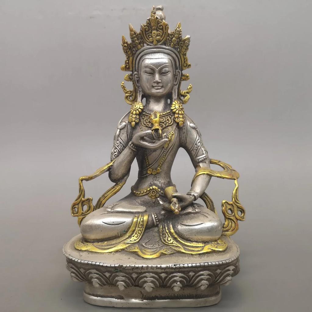 21СМ 21СМ Тибет Ваджрасаттва Посеребренная Бронзовая и Золотая Статуя Будды — купить товар онлайн с бесплатной доставкой по всему миру!