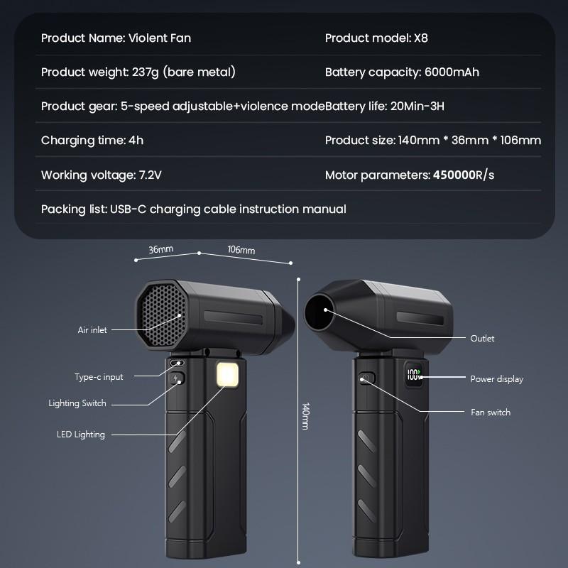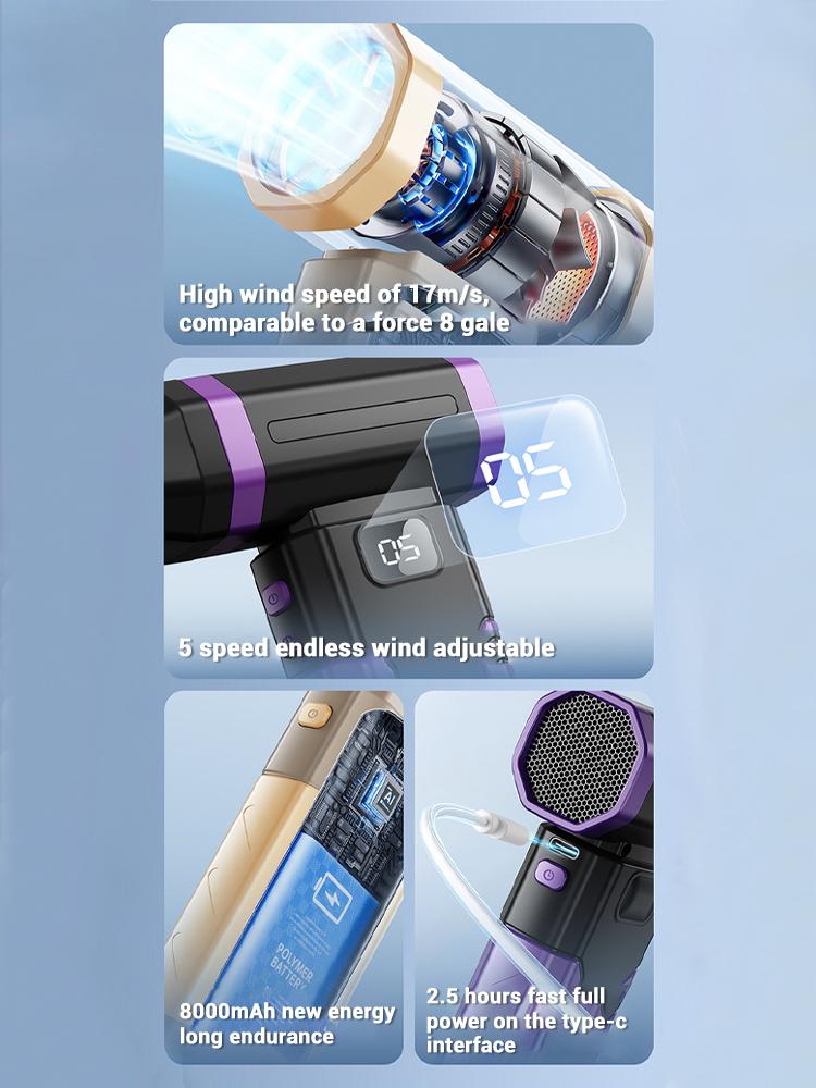 450000 об/мин Мощный воздуходув Турбо-вентилятор Высокоскоростной турбо-вентилятор Бесступенчатая регулировка скорости Бесщеточный ручной канальный вентилятор для очистки ПК