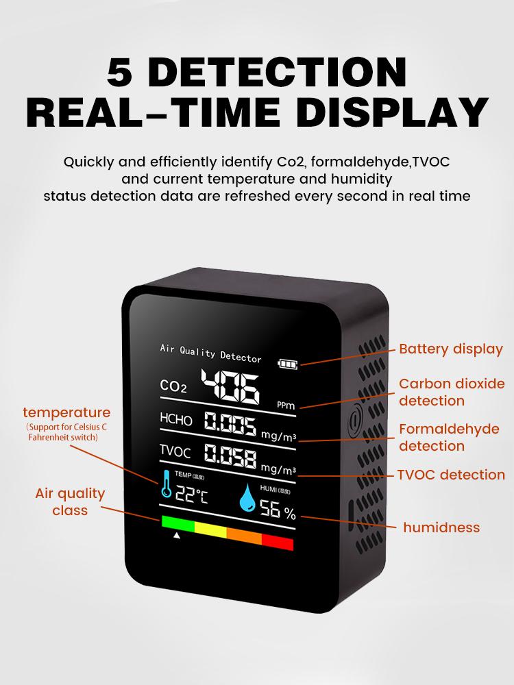 Монитор качества воздуха 5-в-1 Детектор качества воздуха Детектор CO2 Тестер формальдегида HCHO TVOC ЖК-дисплей Тестер температуры и влажности Сигнализация — купить товар онлайн с бесплатной доставкой по всему миру!