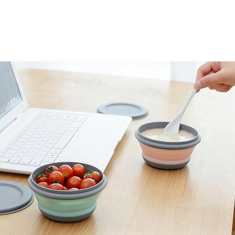 3Pcs/Set Bowl Sets Silicone Folding Lunch Box Portable Foldable Salad with Lid Blue WF12