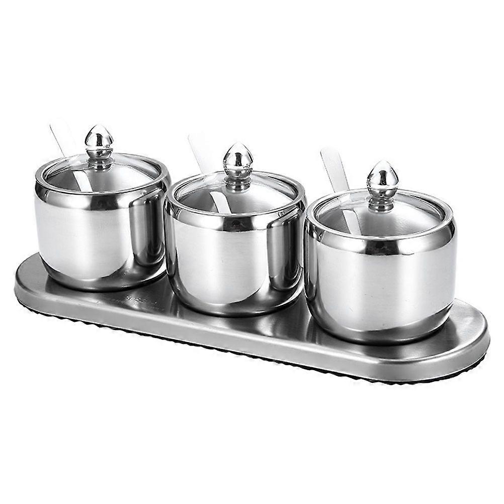 Банка для приправ из нержавеющей стали, кухонная емкость для соли, многофункциональная емкость для хранения специй (3 банки с подставкой)