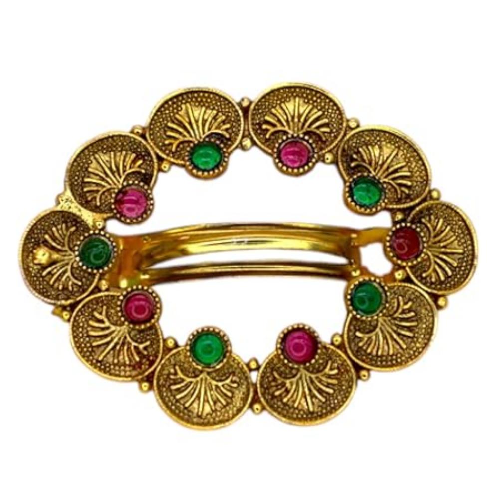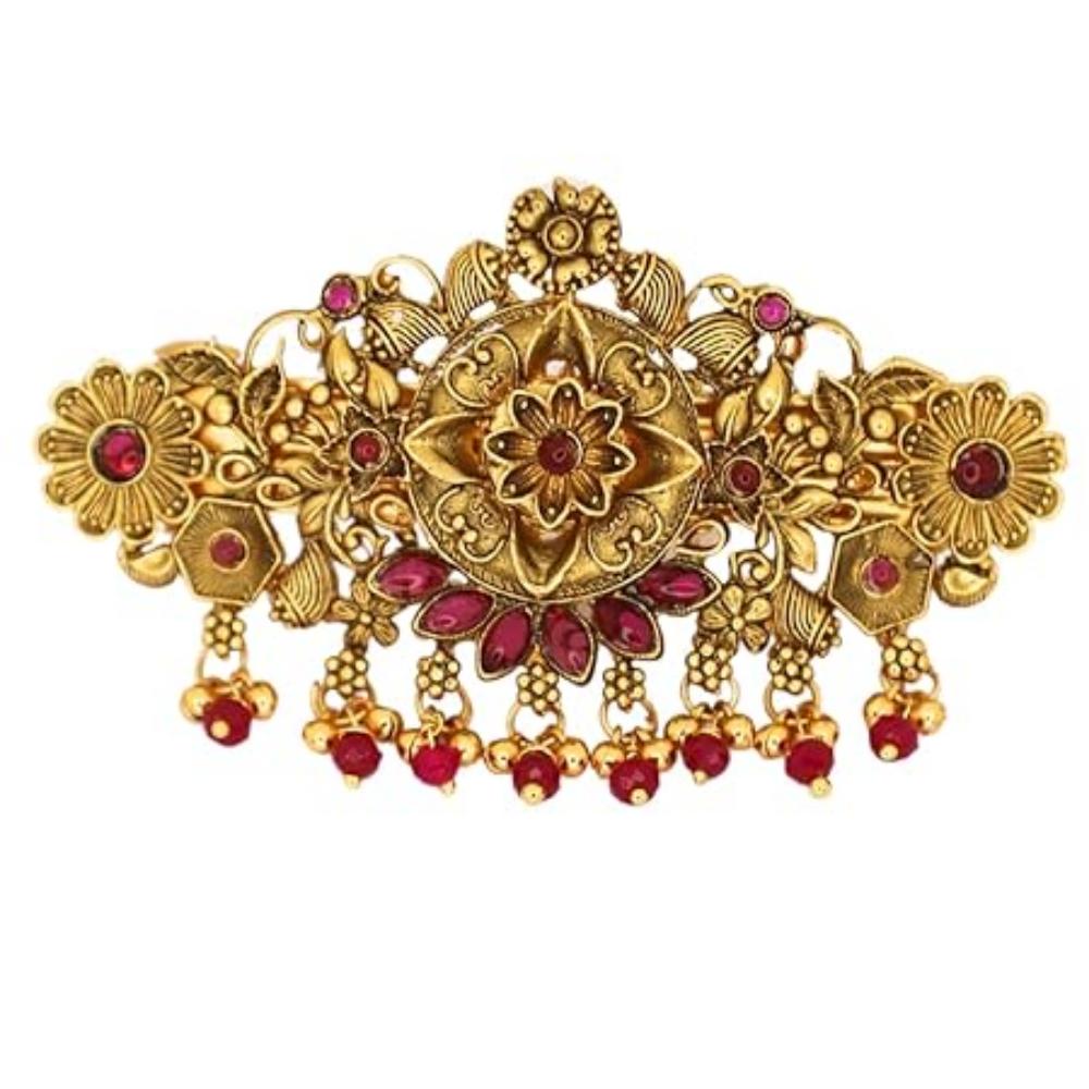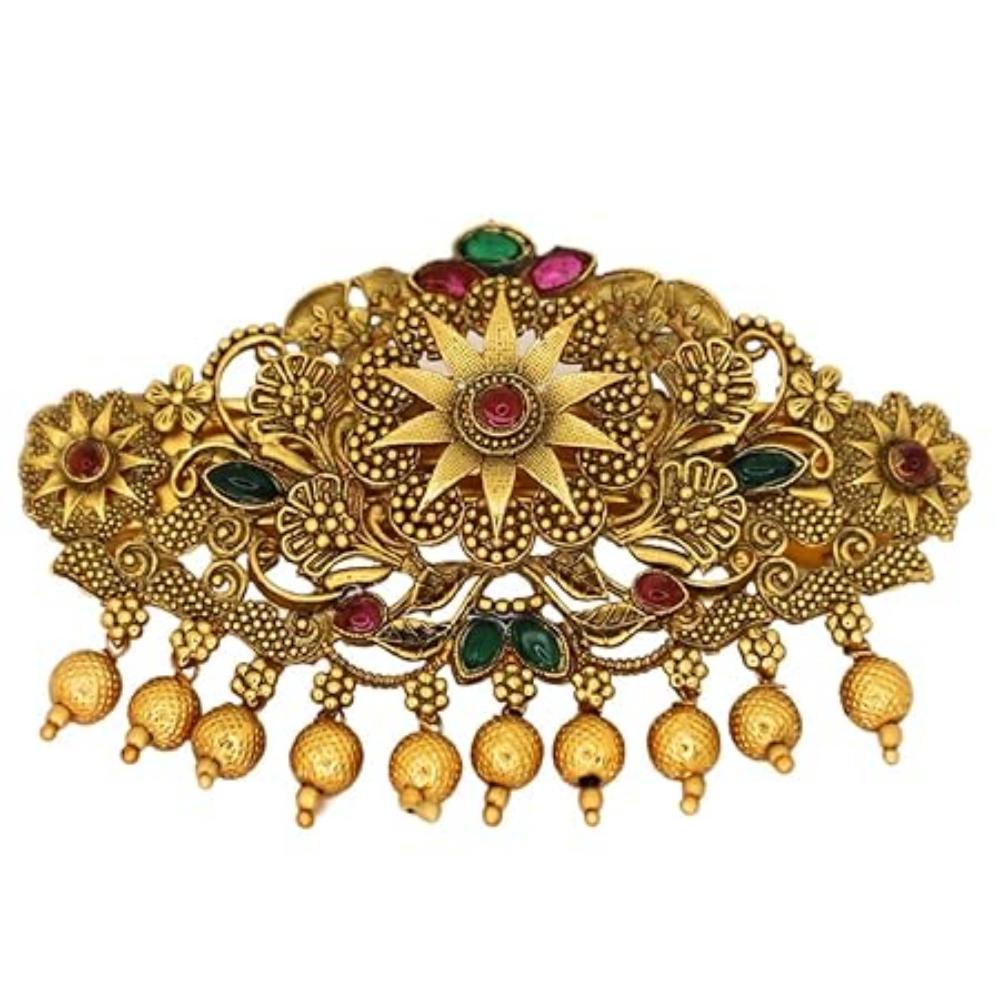 Традиционная золотистая заколка-клип для волос с цветочным дизайном и подвесками из бусин (Дизайн-1)