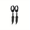 1 пара серег-колец и набор серег с перьями, модный уличный стиль Гонконгский хип-хоп стиль, ретро персонализированные мужские и женские серьги.