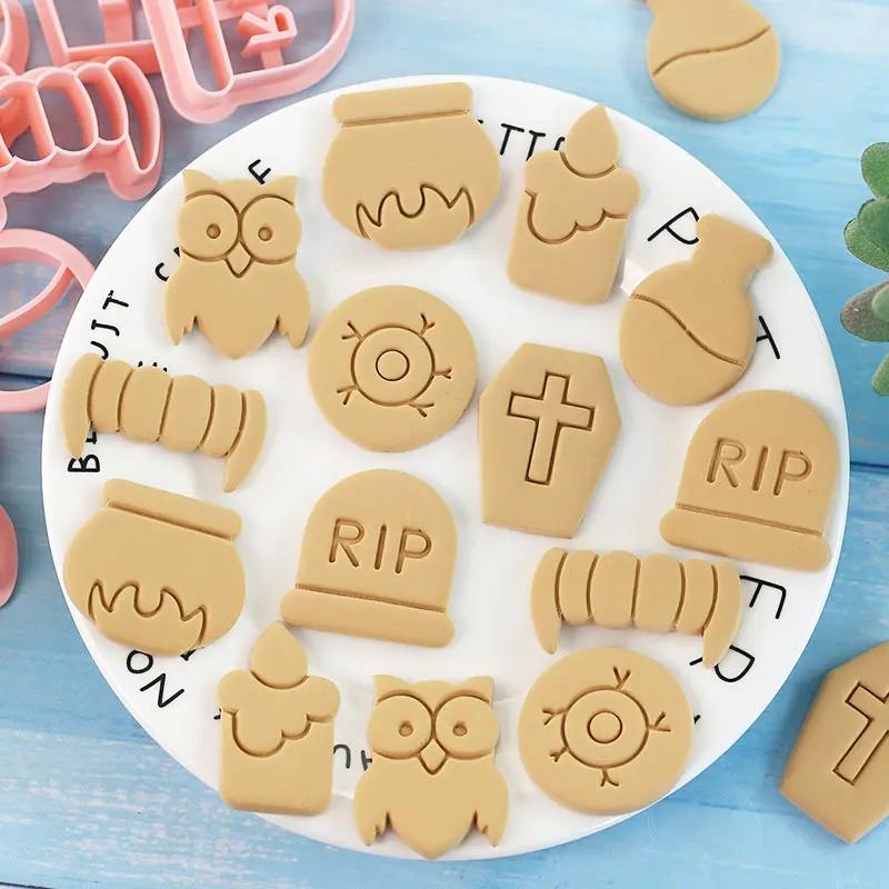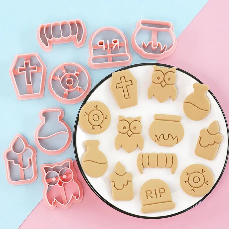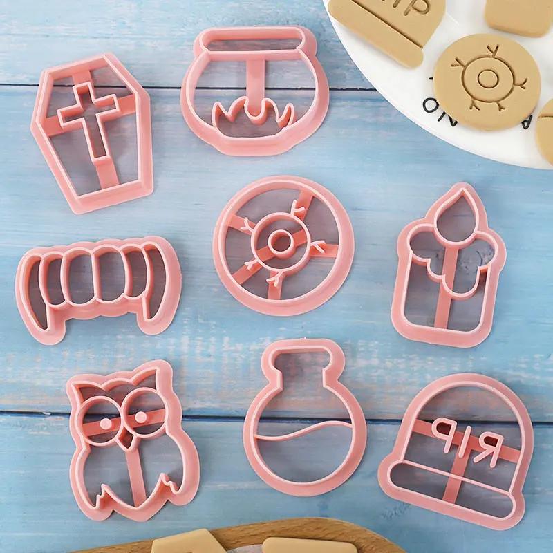 8Pcs Set Cartoon Halloween Biscuit Mould Halloween Cookie Cutting Mold Fondant Cookie Cutters Party Cake Decoration Baking Tools