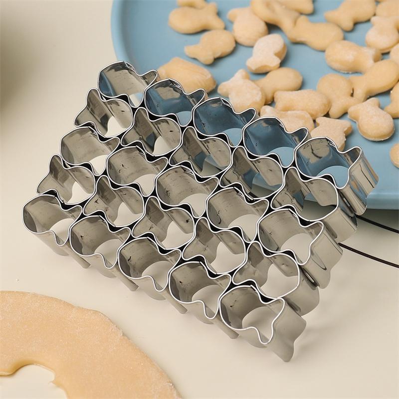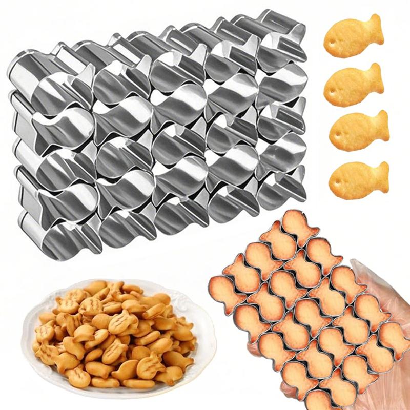 25 ячеек Форма для печенья из нержавеющей стали в виде рыбы DIY Форма для тиснения печенья Мини-форма для желе, торта, шоколада в виде рыбы Принадлежности для вечеринок, для выпечки