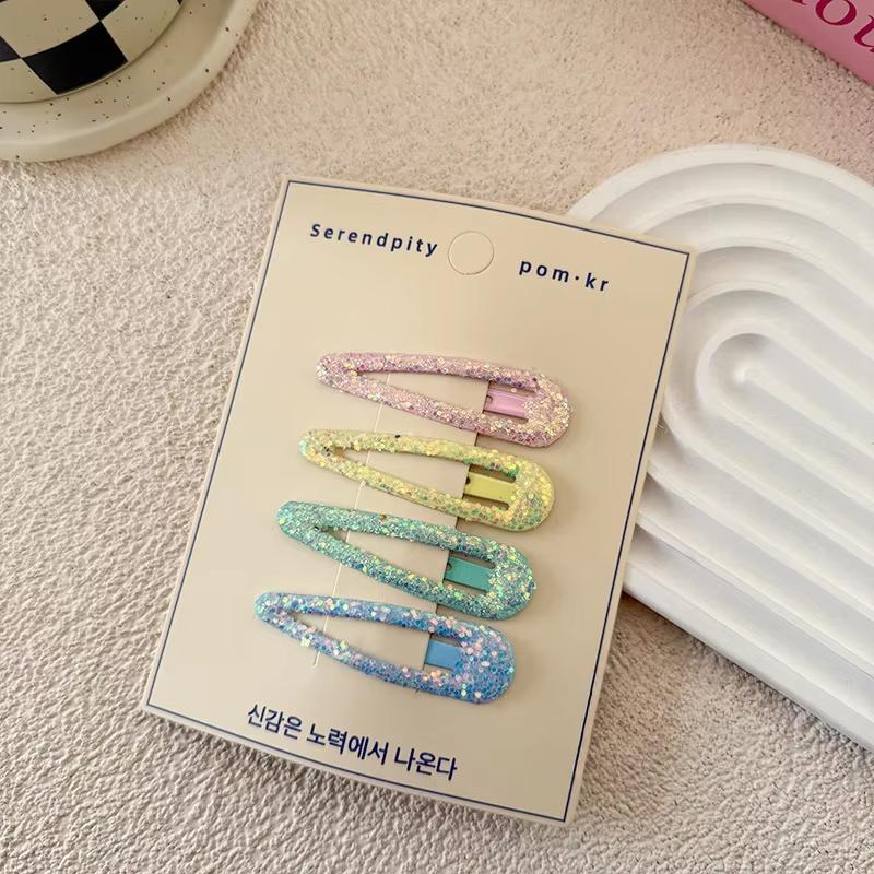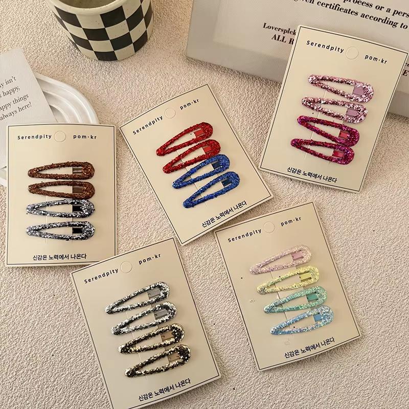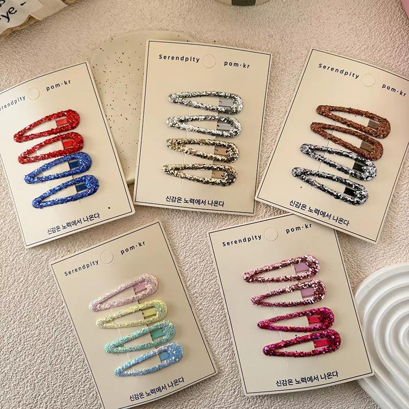 Новые корейские милые девчачьи блестящие заколки-клипсы в форме сверкающей капли для волос для девочек, разноцветные блестящие заколки для челки