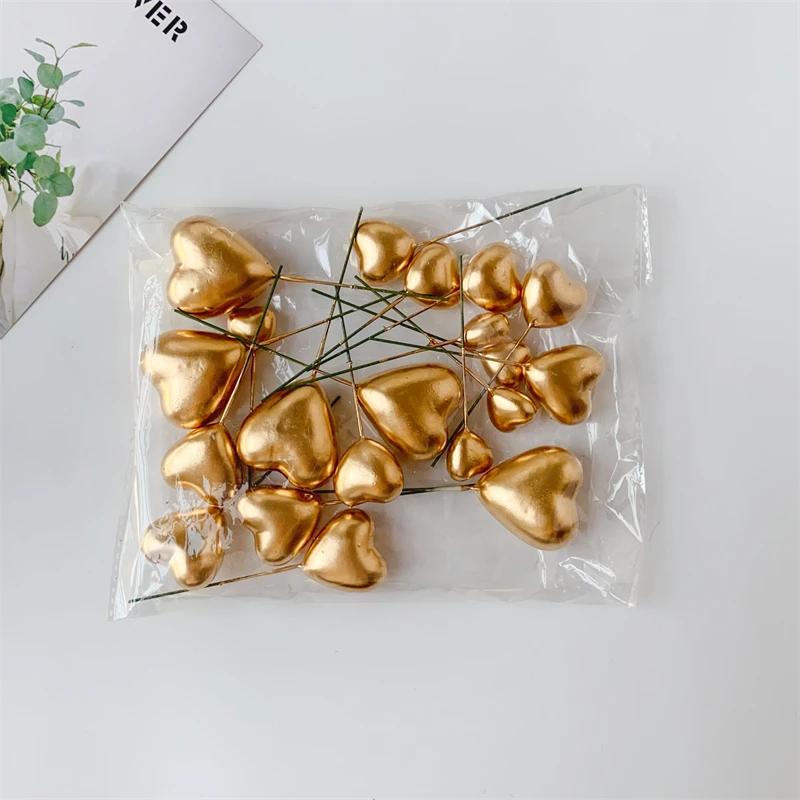 20 шт. Набор топперов для торта Сердце 2 см-4 см Сферы Рождественский шар Украшение для торта на день рождения Вечеринка Кекс Флажок Свадьба Золотые Серебряные шары