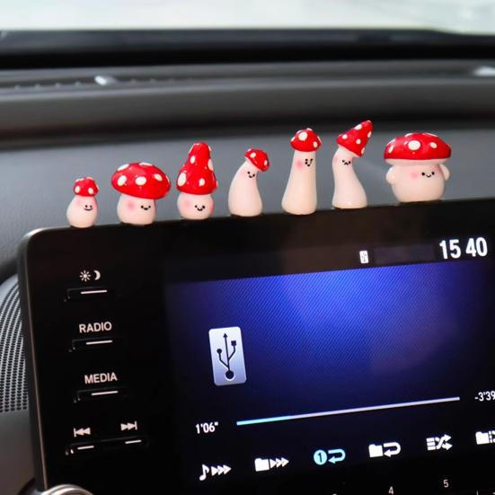 Украсьте салон вашего автомобиля этим очаровательным украшением в виде гриба.. Эти украшения в форме грибов идеально подходят для придания нотки причудливости приборной панели или зеркалу заднего вида, создавая веселую и естественную атмосферу вождения.. В набор входят 7 красных грибов разных форм: маленькие, толстые и с наклонной шляпкой, которые добавят вашему автомобилю милый и интересный вид.