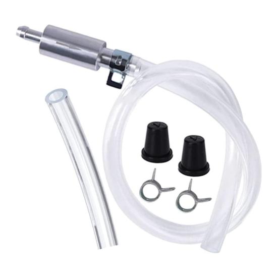 Для дополнительного удобства в этот набор входят 2 запасные гайки вентиляционных сопел и портативная конструкция для удобства обращения.. Гибкий шланг можно согнуть под разными углами, а инновационное быстроразъемное соединение с зажимом позволяет крепить его к клапану прокачки тормозов/сцепления без использования инструментов.. Используйте хомут для шланга для двойной герметичной защиты от утечки масла, подходит для большинства моделей.