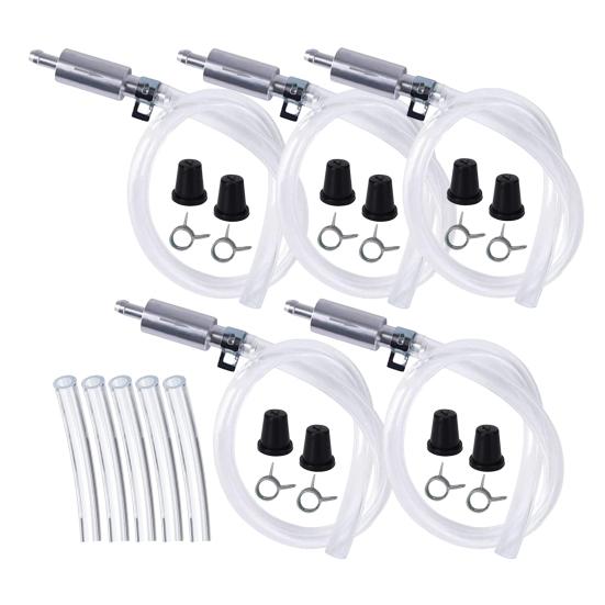 Этот комплект для прокачки тормозов включает 2 запасные гайки штуцера для прокачки для дополнительного удобства. Разработанный с учетом портативности, набор идеально подходит для профессиональных автомастерских и автовладельцев-любителей, ищущих эффективные инструменты для обслуживания тормозов.