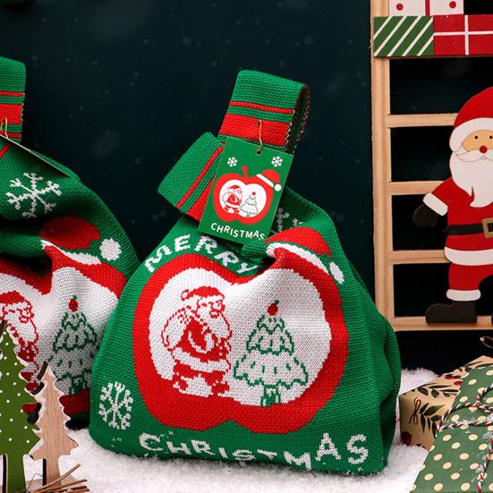 Рождественский подарочный пакет Вязаная сумочка в виде рождественской елки Пакет для подарков на вечеринку в канун Рождества Многоразовый подарочный мешочек для праздничной упаковки подарков