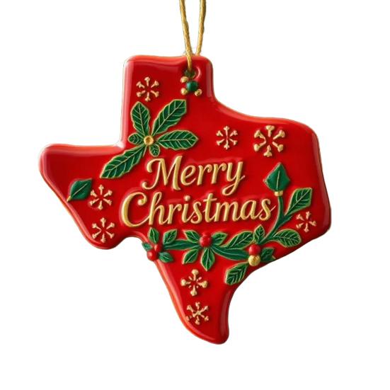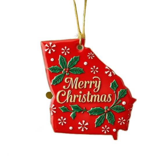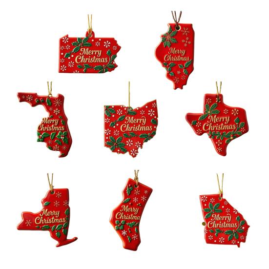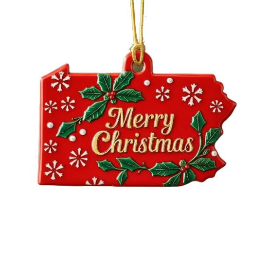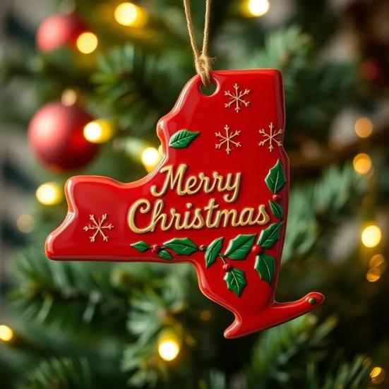 State Pride Christmas Pendant Merry Christmas in Golden Fonts U.S. States Patterns Holly Leaves Berries Snowflakes Xmas Ornament