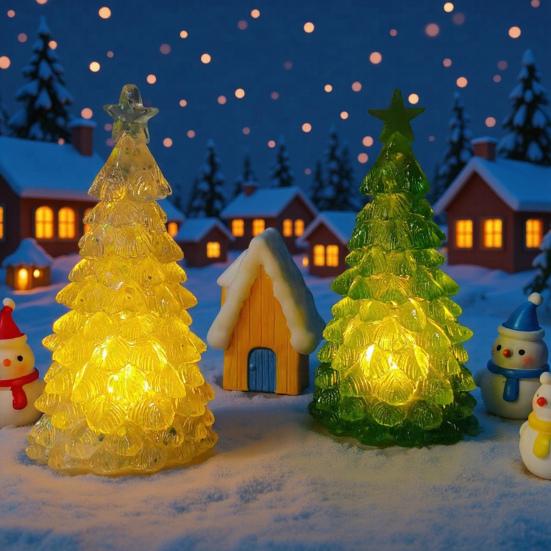 Премиум качество: Изготовленные из синтетической смолы и кристалла, эти светодиодные ночники-украшения для рождественской елки отличаются изысканным мастерством и долговечностью, обеспечивая долговечную красоту и очарование.