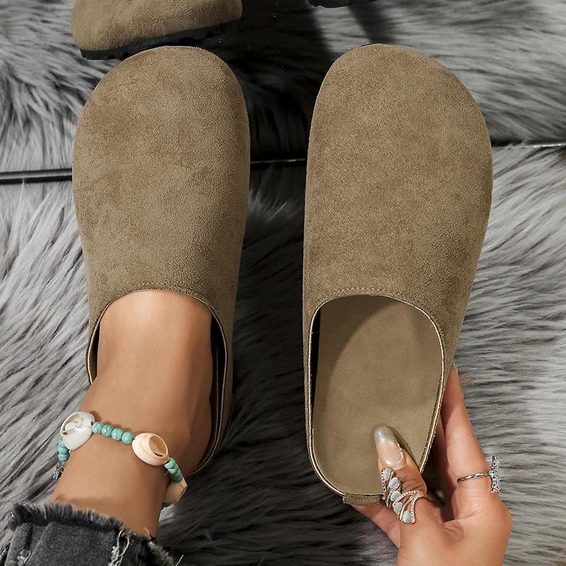 Модные весенние сабо с круглым носком и пробковой подошвой для женщин, уличные, с пробковой стелькой, на плоском каблуке, туфли-мюли, женские, больших размеров, замшевые шлепанцы, женские
