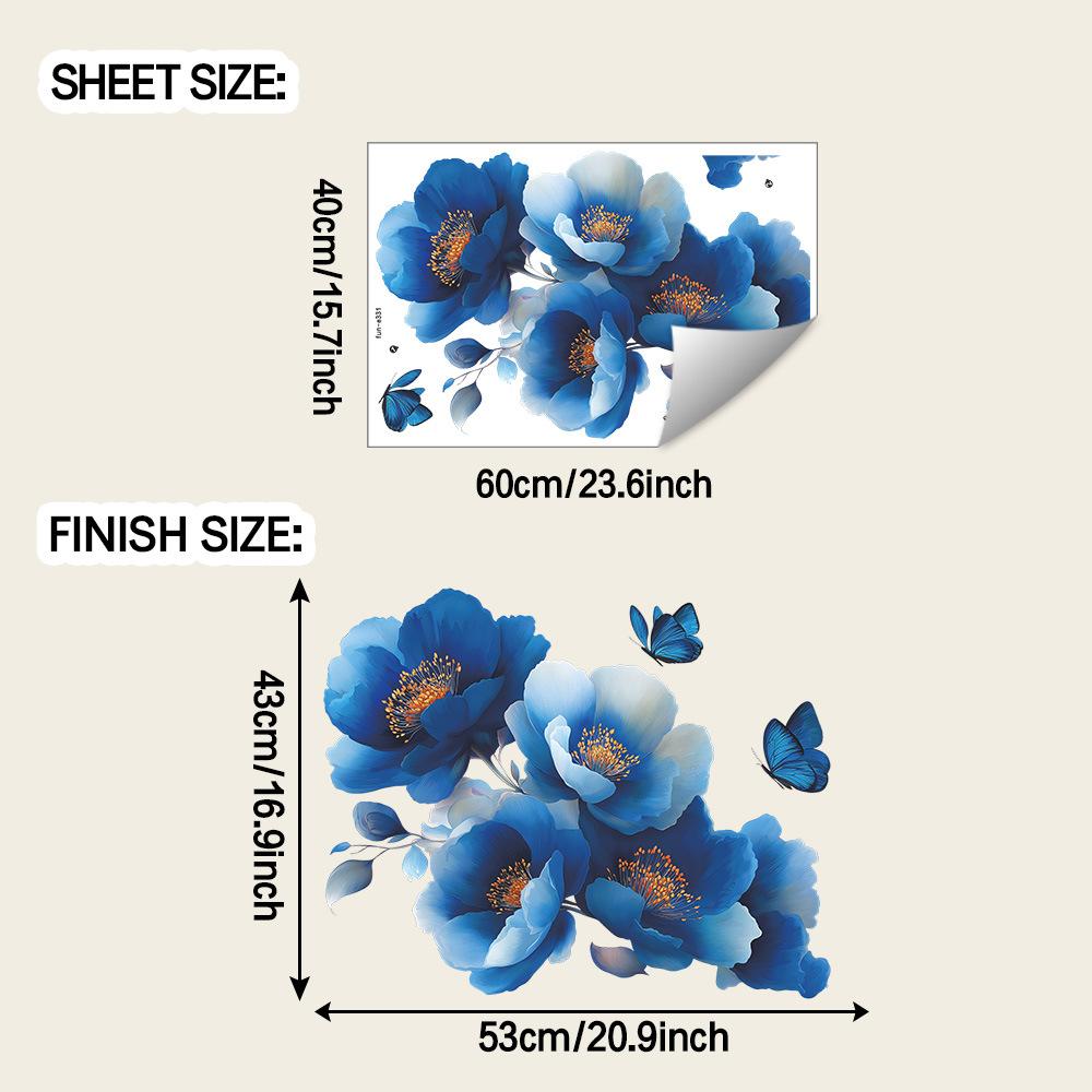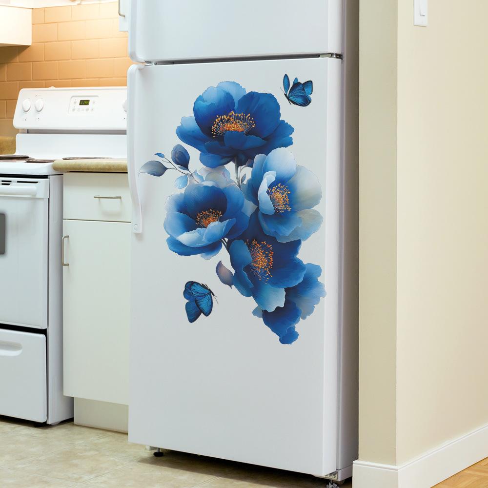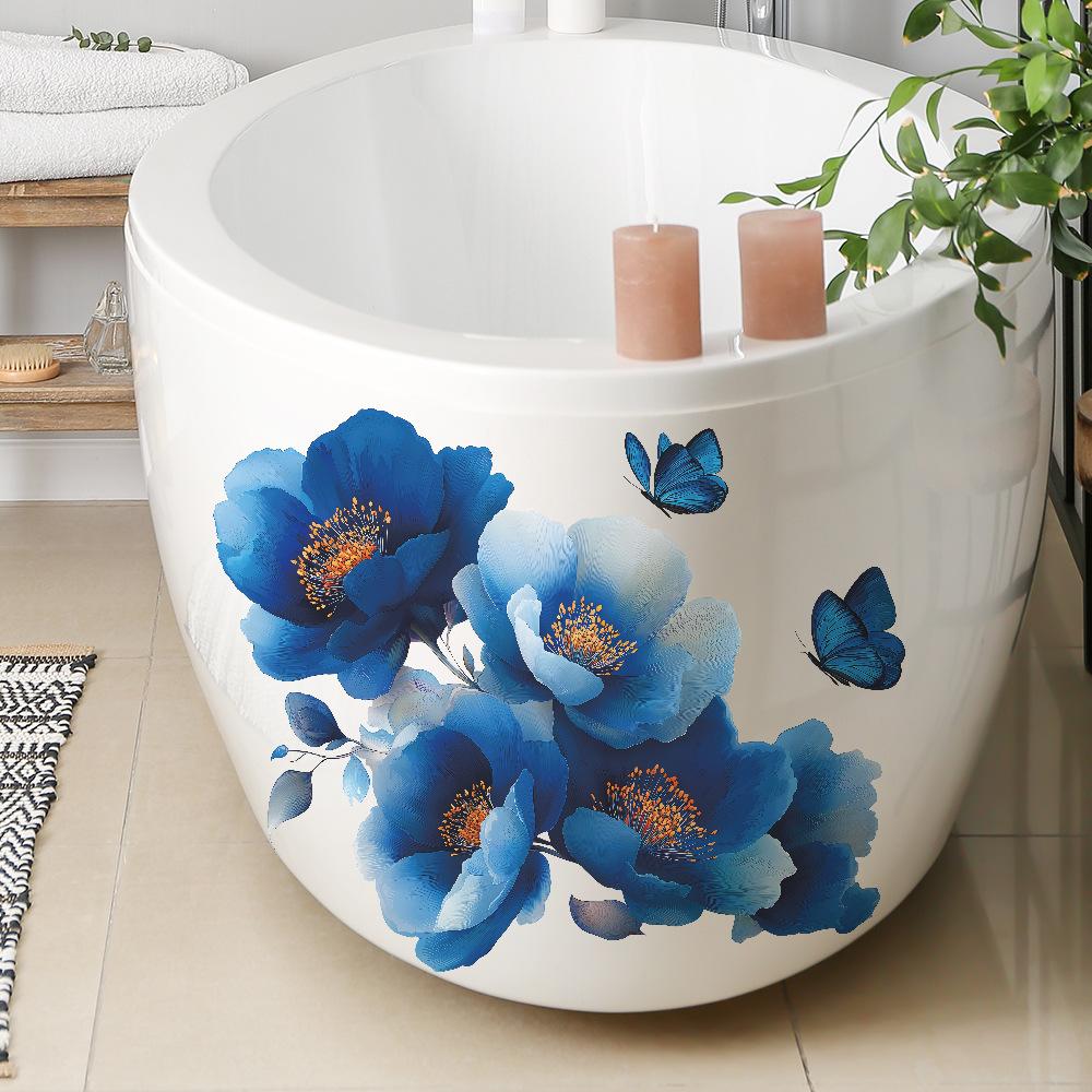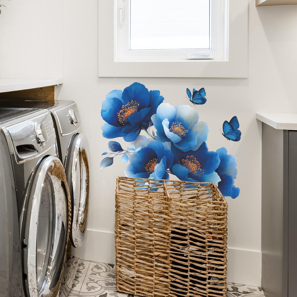 Креативные и мечтательные синие цветочные наклейки для украшения стен с бабочками для прихожей, ванной комнаты