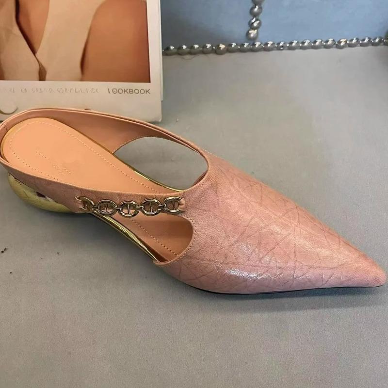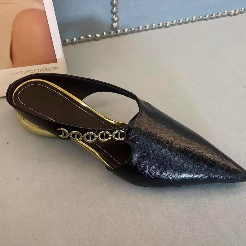 Модные французские ретро туфли-балетки с острым носком и металлической цепочкой, женские уличные сандалии и тапочки, модные
