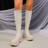 Мода 2024 Новые вязаные длинные сапоги на толстой подошве для женщин Модные эластичные носки-туфли Сапоги выше колена Круглый носок Низкий каблук Ботас