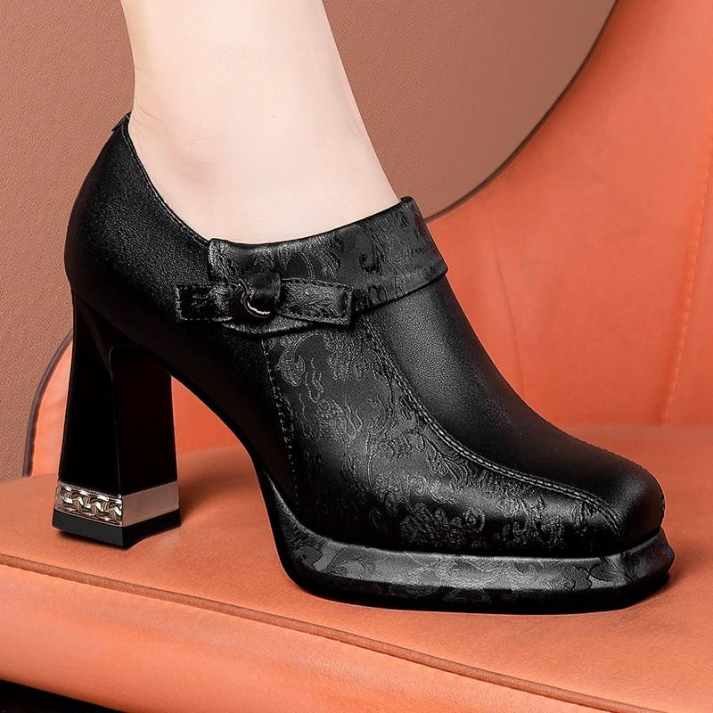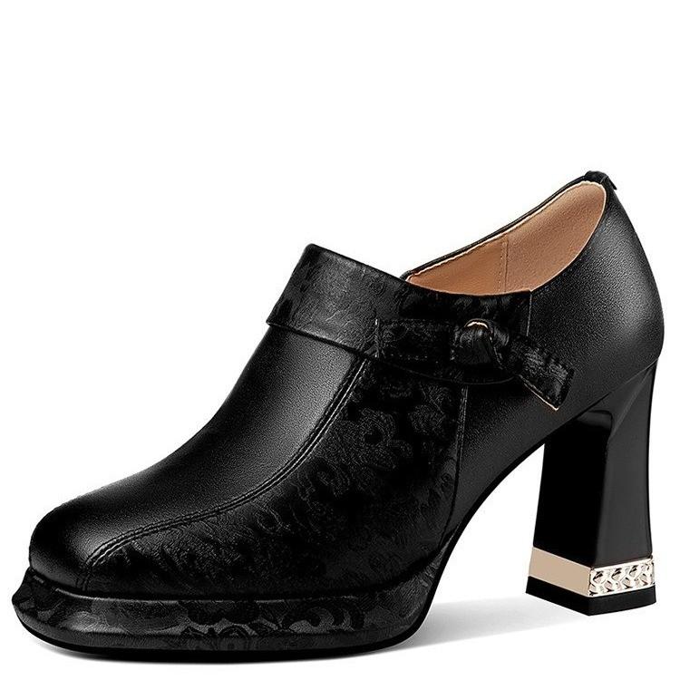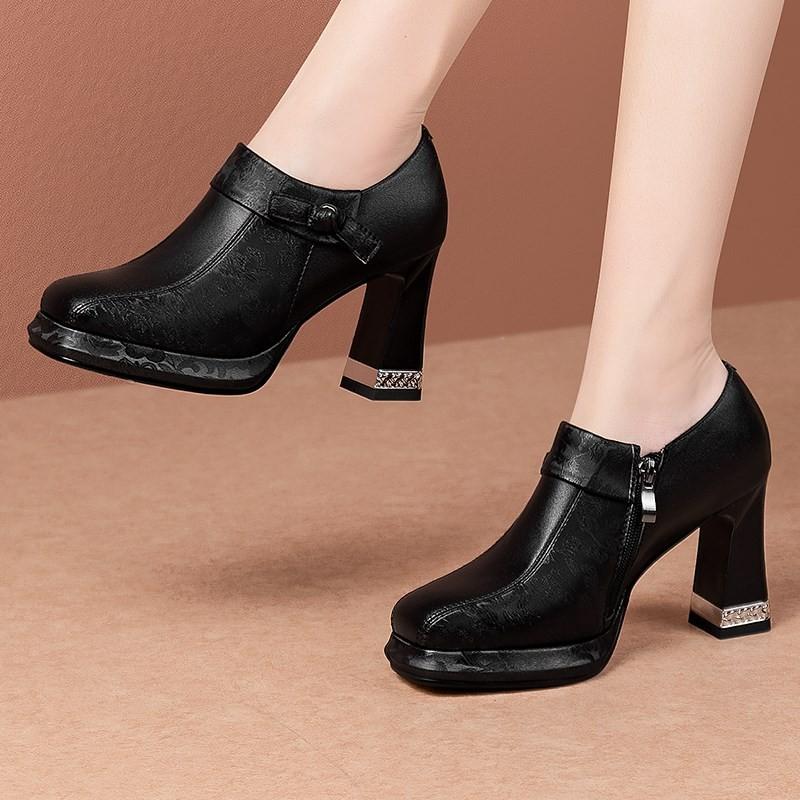 Модные весенне-осенние новые черные туфли-лодочки с круглым носком, толстым высоким каблуком, на молнии сбоку, повседневные туфли на платформе, женская обувь