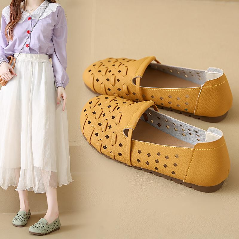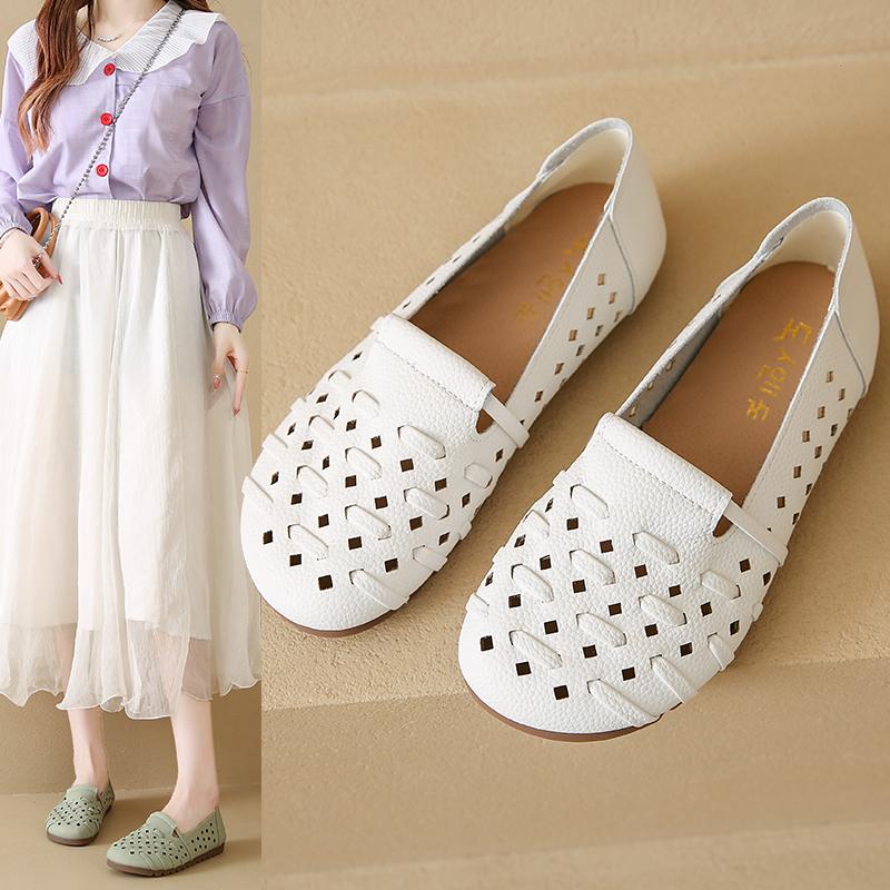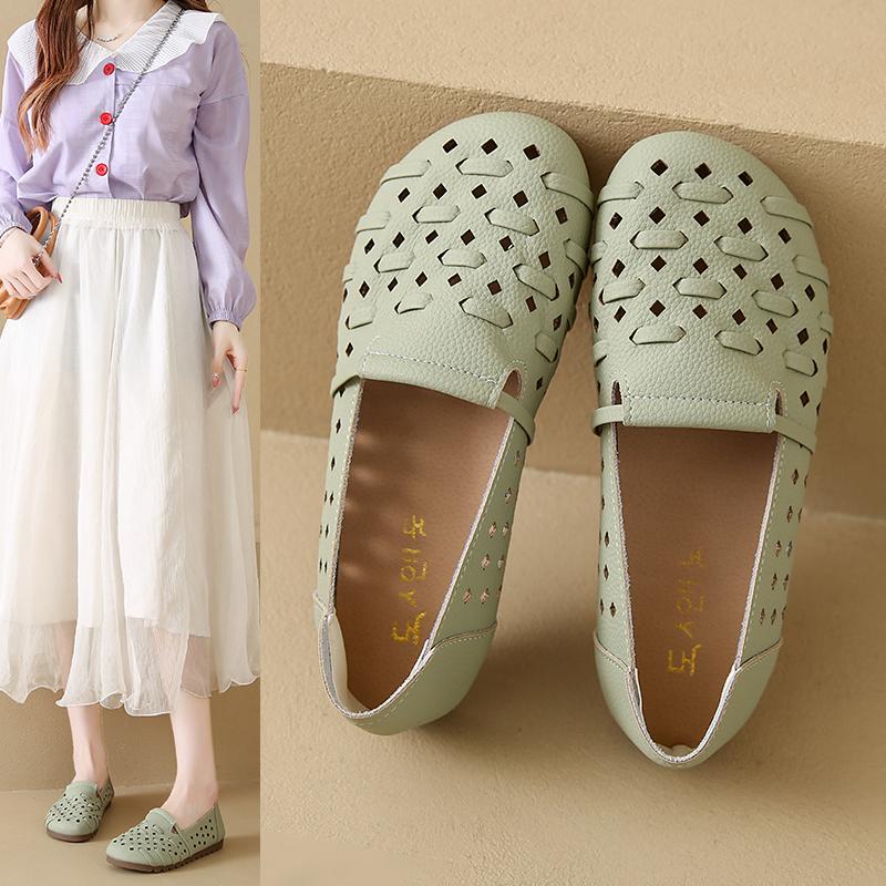 Мода 2025 Лето Новые Перфорированные Туфли с Мягкой Подошвой, Повседневные и Дышащие Плоские Одинарные Туфли для Мамы
