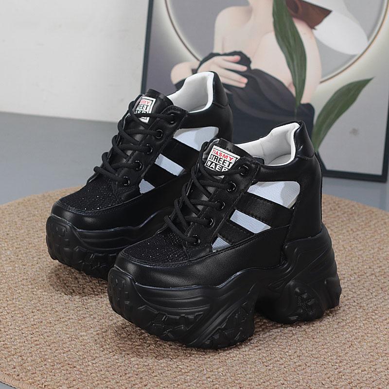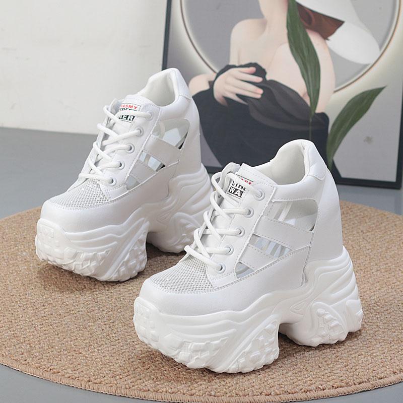 Мода 13СМ Воздушная сетка Синтетическая микрофибра Кожа Блестящие Вулканизированные Полые Летние Массивные Кроссовки Платформа Танкетка Балетки Женская Обувь