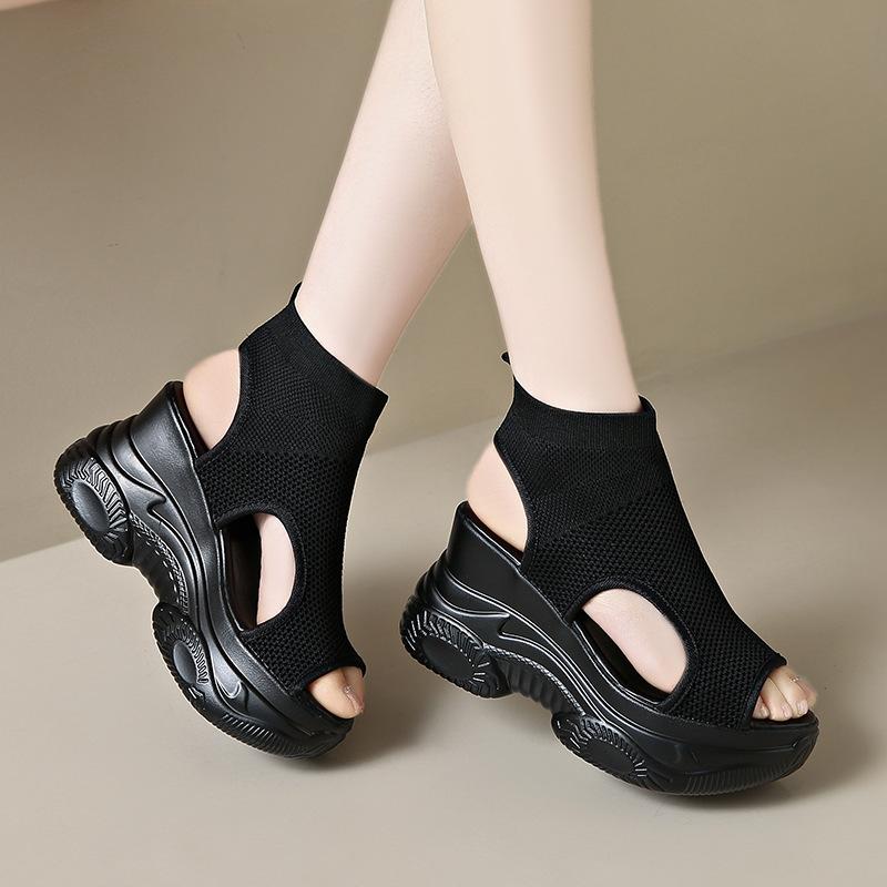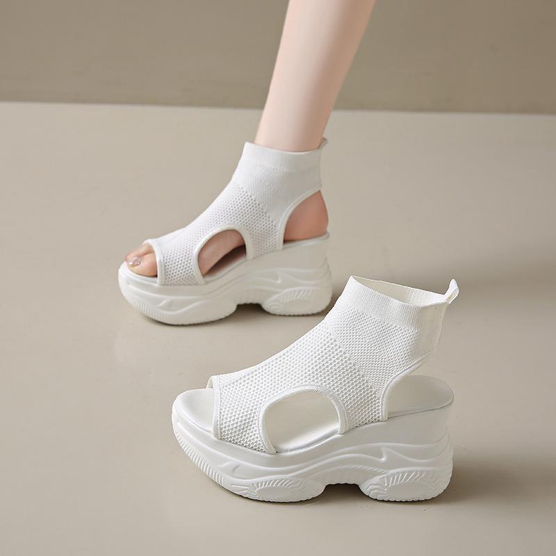 Мода 2025 Новая летняя мода Удобные босоножки-клинья с круглым носком Легкие римские сандалии Нескользящие на толстой подошве На шнуровке Повседневные кроссовки для женщин