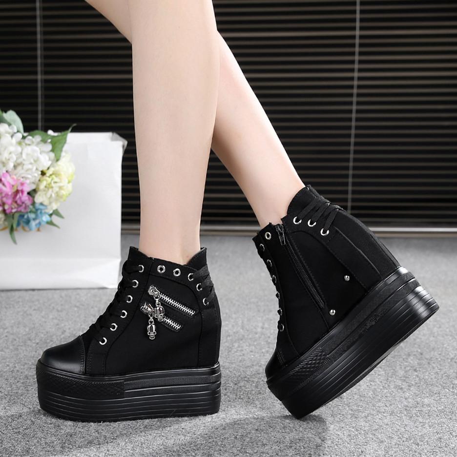 Мода 2025 Классические кроссовки на платформе со скрытой танкеткой Женская дышащая парусиновая обувь на танкетке Женская повседневная женская обувь Осенние Zapatos Mujer