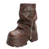 Fashion Women High Platform Ankle Boots Autumn Winter Gothic Style Leather Shoes Buckle Punk Motorcycle Boots Round Toe Chunky Sneakers