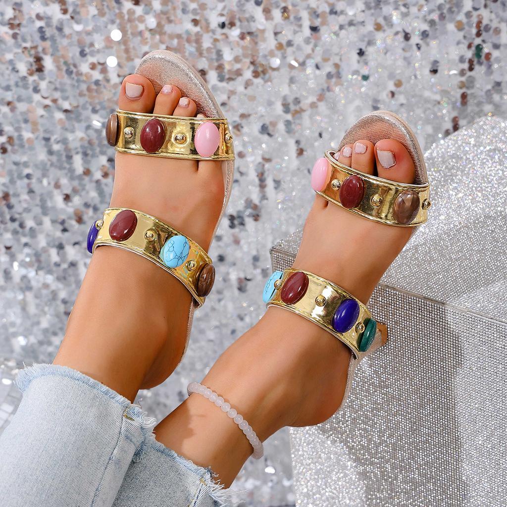 Модные сандалии на толстом каблуке для женщин, летний стиль, стразы, удобные и универсальные, женские шлепанцы с открытым носком