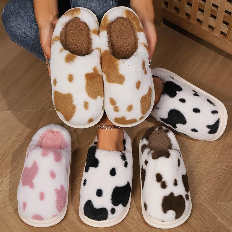 Модные разноцветные хлопковые тапочки в горошек, женские удобные плюшевые тапочки из искусственного меха для женщин, домашние с круглым носком, нескользящие меховые шлепанцы для дам